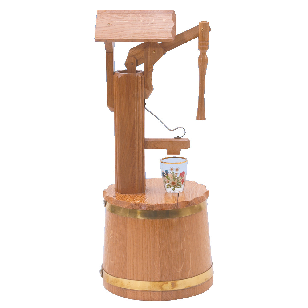 Aus bestem österreichischem Eichenholz, ein österreichisches Qualitätsprodukt. Ein originelles, nicht alltägliches Geschenk, in erstklassiger Verarbeitung. Voll funktionsfähig! Höhe 43 cm, Inhalt 5/4 L.