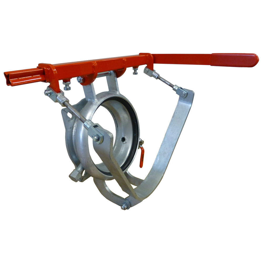 Handhebel links oder rechts positionierbar, Griffteil vierfach verstellbar in 90° Schritten, Spannweg, Spannstärke und Schließkraft stufenlos einstellbar, gegen Selbstlösung gesichert, Entlüftung über 1/2 Zoll Kugelhahn.