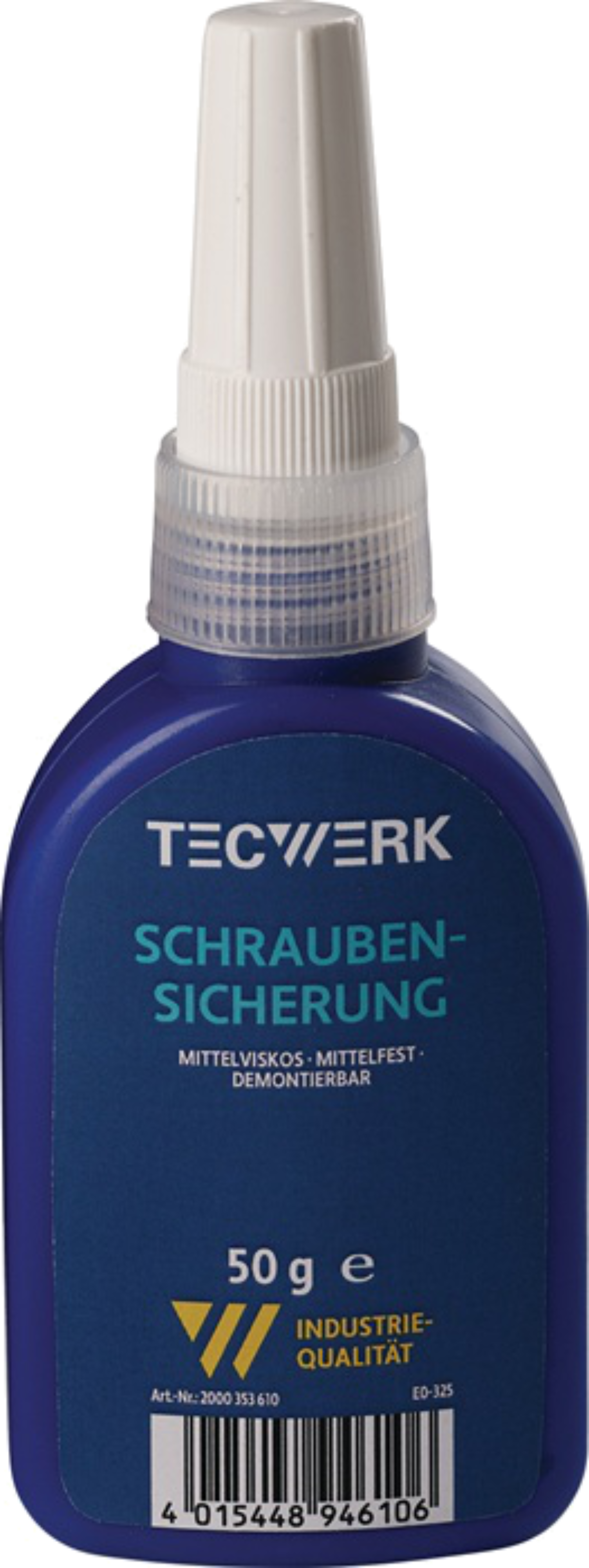 Zum Sichern von Schrauben und anderen metallischen Schraubverbindungen. Beständig gegen Öle, Fette und Wasser, hohe Temperaturbeständigkeit, für Gewinde bis M24, Flasche 50 g.