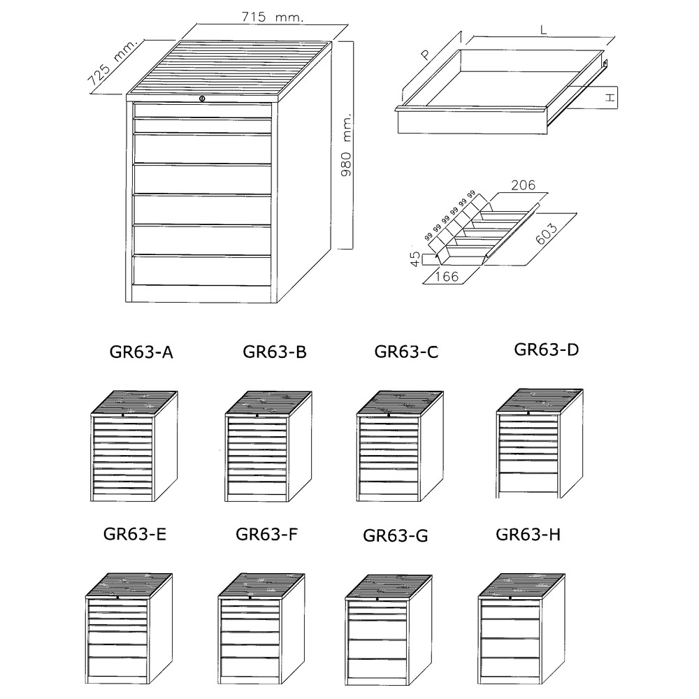 Produktinformationen "Schubladenschrank Modell GR 63"