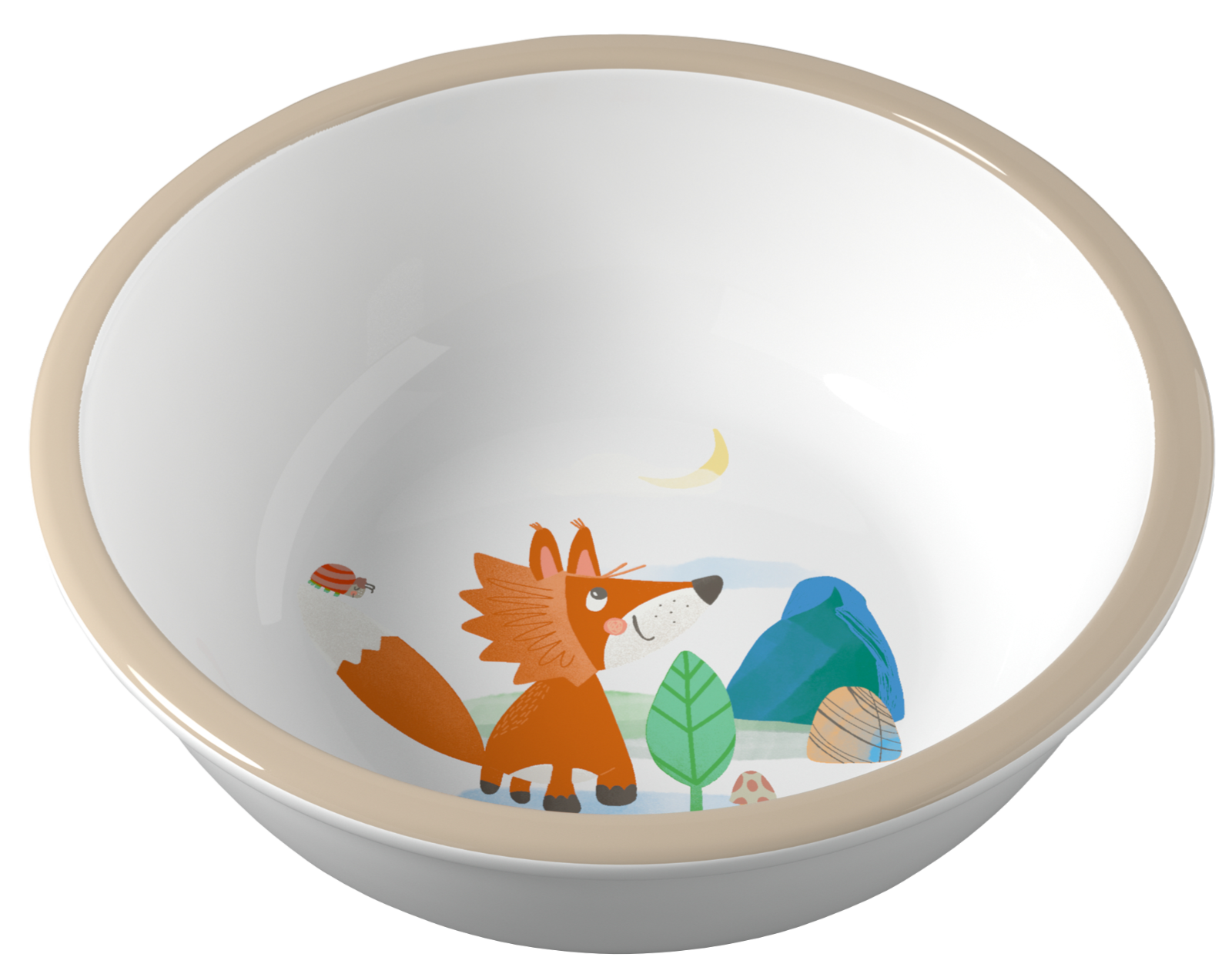 Kurz erklärt: Das liebevoll gestaltete Melamin-Geschirr bringt beim Auslöffeln für Waldfans jede Menge zu sehen zum Vorschein