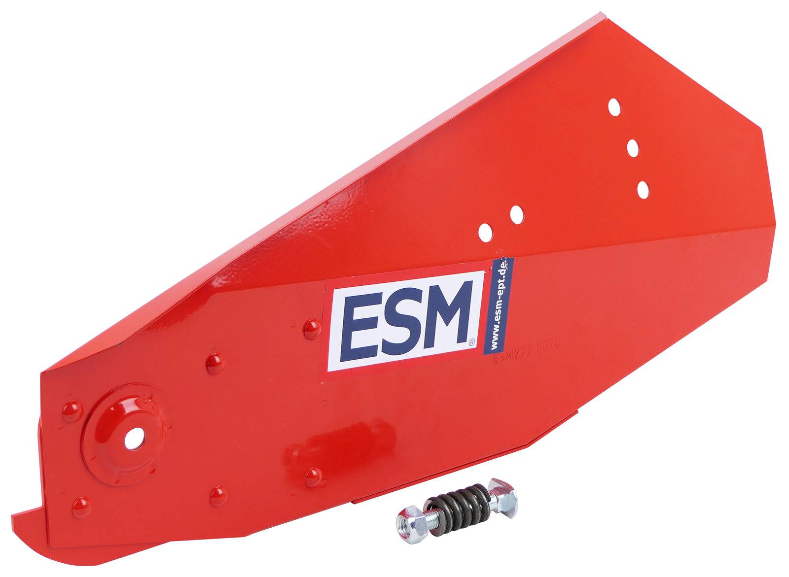 Schwadblech links für Motormäher mit Außenschuh. Das Schwadblech wird komplett mit dem Befestigungsmaterial geliefert.Passend zu Fingerbalken Agria, ESM, Köppl und Nussmüller Rasant.