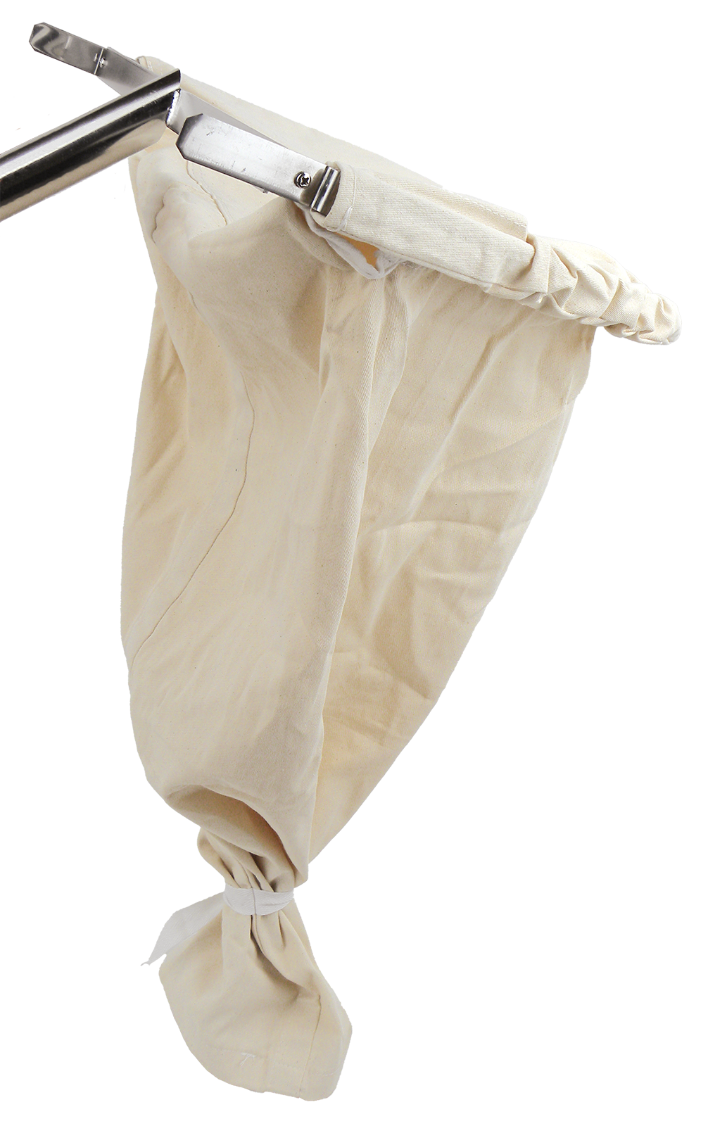 Schwarmfangbeutel zum Montieren auf einem Stiel/Teleskopstange. Die Edelstahlhalterung ist verschraubt und der Stoffbeutel daher abnehmbar und waschbar. Nicht über ein Zugseil verschließbar.