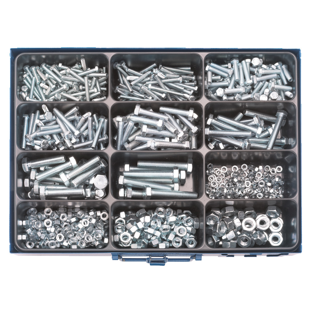 Verzinkt, M5x20 - M10x60.Nachfüllpackung im Karton, 1/2 Sortimentinhalt