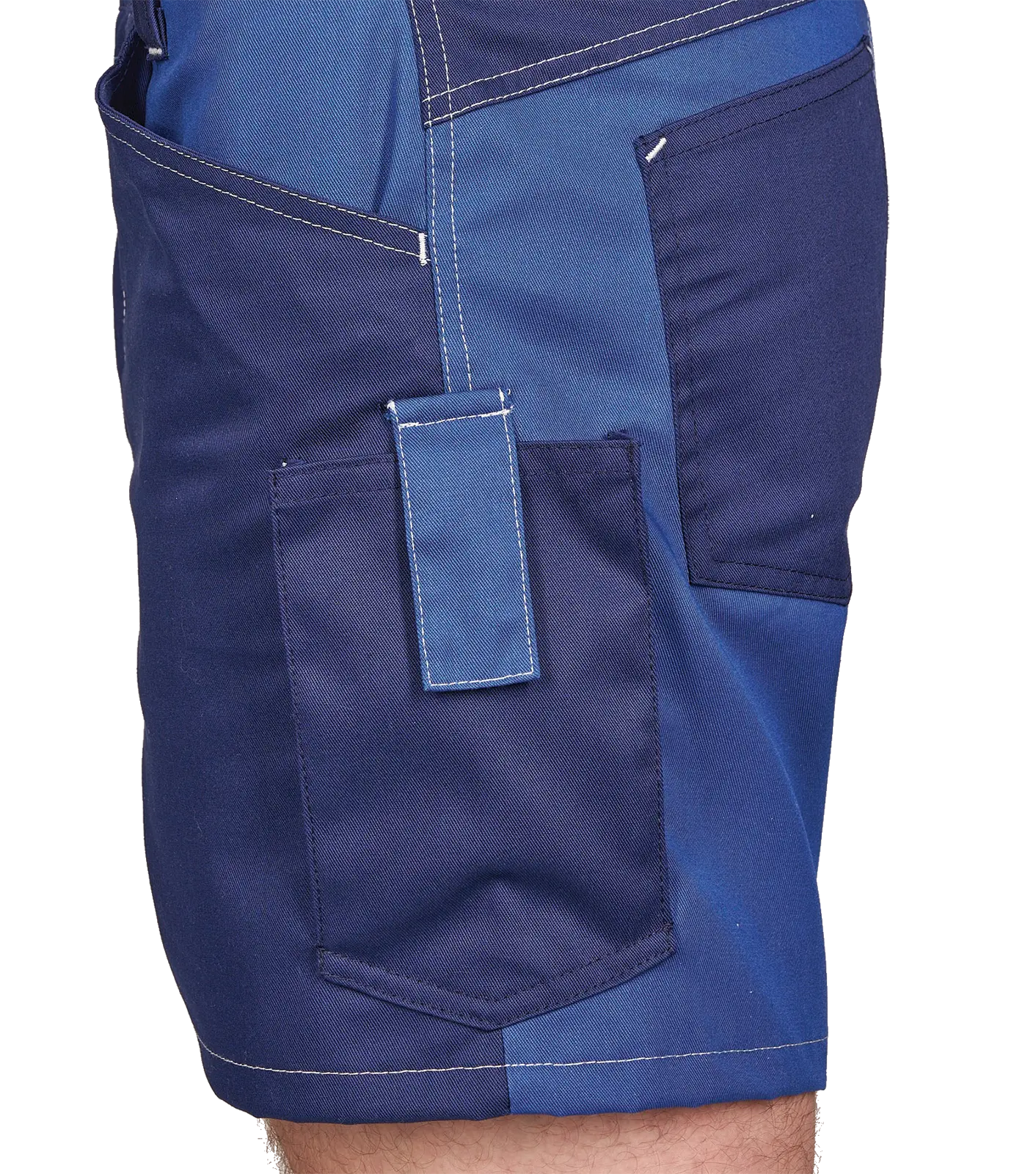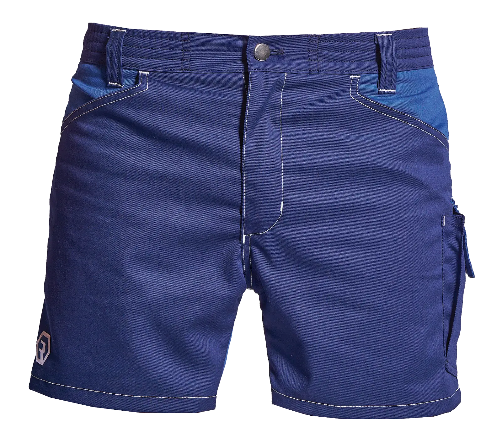 Kühle Sommershorts für Industrie, Landwirtschaft und Gewerbe mit zwei Einschubtaschen vorne, eine Handytasche mit Lasche und Klettverschluss, eine Gesäßtasche hinten links. Bund mit Patentknopf und Gummizug, Hosenschlitz mit Metallzipp. Eine perfekte Hose bei großer Hitze. Material: 65% Polyester, 35% Baumwolle, 245g/m². Farbe: dunkelblau/Alaskablau Größen: 44-58.