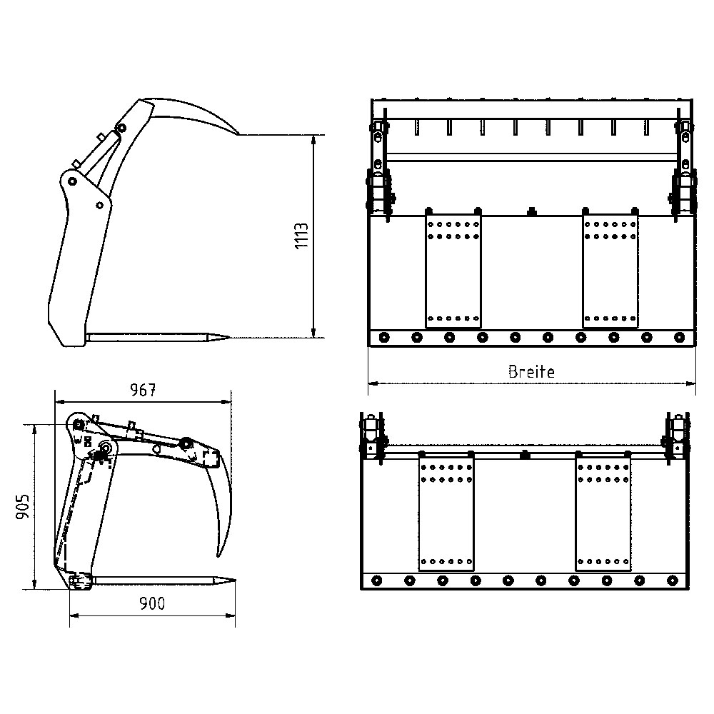 Universal passend für Frontlader, Rad- oder Teleskoplader durch neues geschraubtes Aufnahmesystem der Aufnahmekonsolen (passende Konsolen zu Ihrem Fahrzeugtyp siehe Seite 537). Durch die hohe Öffnungsweite von 1800 mm auch sehr gut geeignet für die Stallentmistung und den Transport von losem Dung, Stroh, Grüngut und Strauchschnitt.