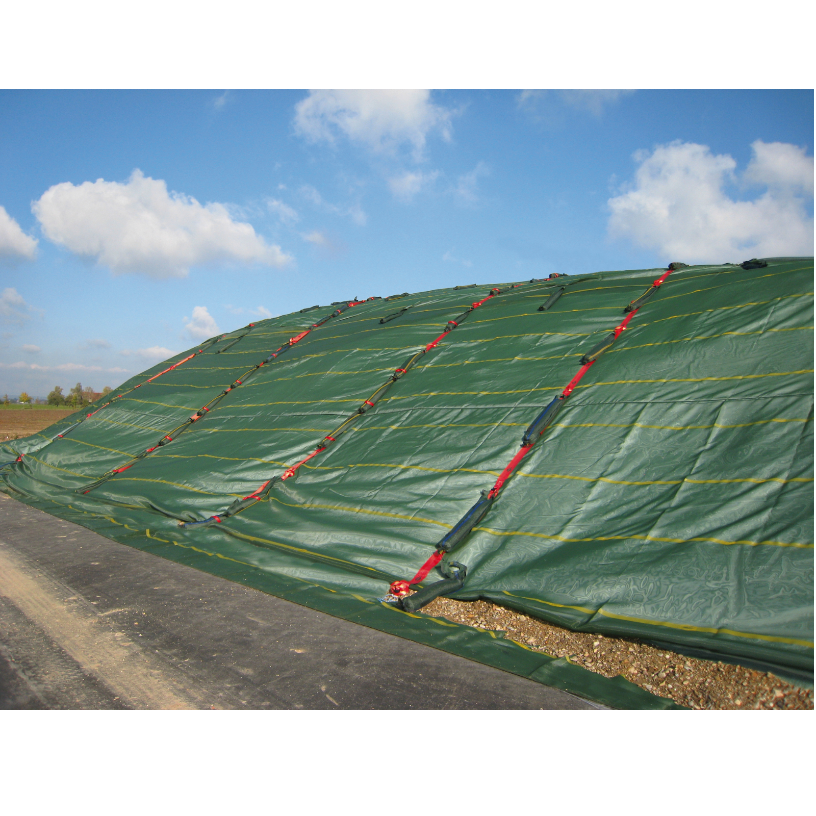 Die innovative quick’n fix® Silosack-Befestigung verhindert das Abrutschen der Silosäcke auf Haufensilos.Am starken und extrem reißfesten Gurt können an den Schlaufen beidseitig Metallhaken angebracht und Zill Silosäcke flexibel und mühelos eingehängt werden.Damit erreicht man eine stabile Querbarriere und Abdichtung, auch am Siloanschnitt!Verschiedene Ausführungen4,3 m Länge mit 5 Haken + 1 Verbindungshaken oder10,3 m Länge mit 11 Haken + 1 Verbindungshaken