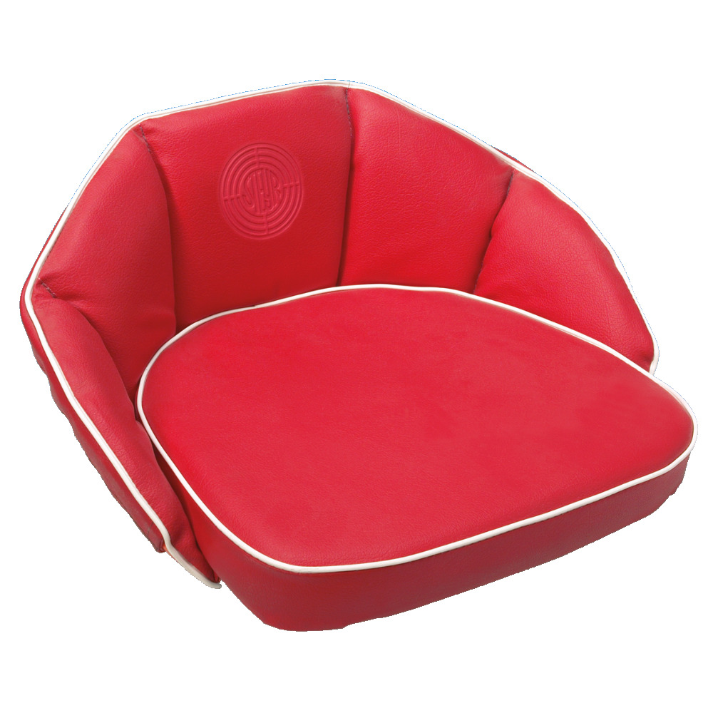 Rot, Lehnenhöhe 32 cm. Sitzfläche 44 x 42 cm, hochwertiger Kunstlederbezug, Polsterung und umlaufendes Gummiband zur Befestigung. Schriftzug passend zum Traktor/Schlepper eingeprägt.
