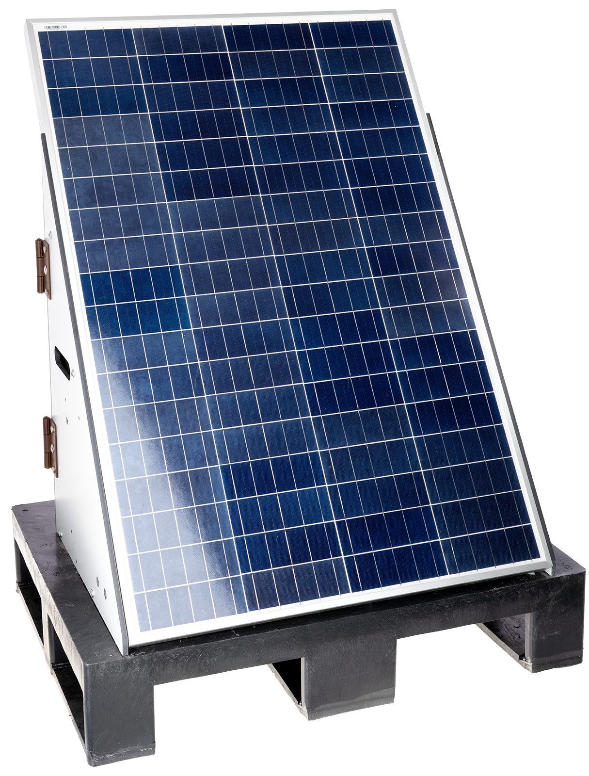 Die komplette Anlage wird fertig montiert auf einer Palette geliefert und muss nur noch mit der Erdung und dem Zaun verbunden werden.