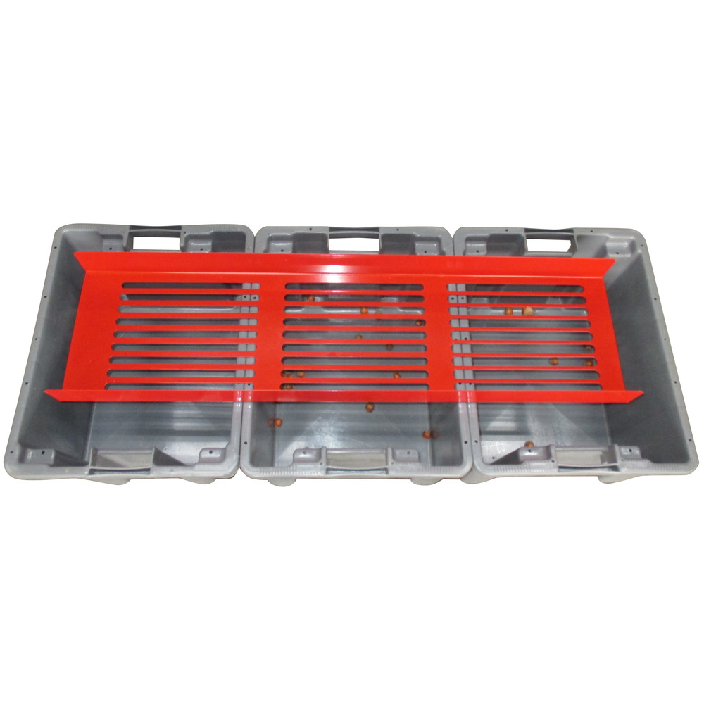 Zum Vorsortieren der Nüsse auf 3 GrößenLänge 118 cm / Breite 25 cmAusführung für HaselnüsseSortiergrößen 14/16/18 mm (Lieferung ohne Wannen)
