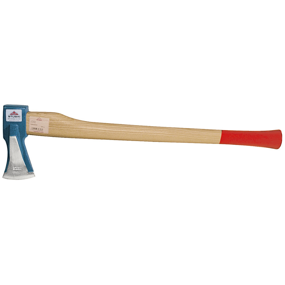 Neuartige Spaltaxt mit Keilstegen für höchste Spaltleistung zum Aufarbeiten von Kamin- und Brennholz, sauber im Gesenk geschmiedet, geschliffen, poliert und lackiert, mit Eschenholzstiel.