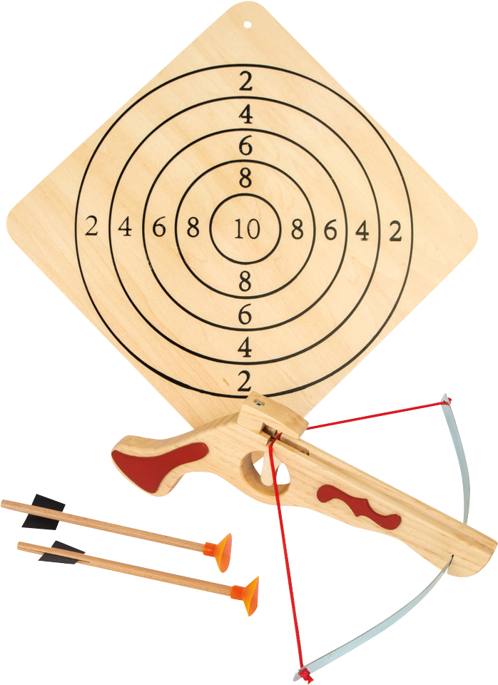 Diese Spielzeug-Armbrust aus Holz dürfte nicht nur bei „kleinen“ Kindern, sondern auch bei „großen“ Kindern für einen großen Spielspaß sorgen. Wer die Holzpfeile zielsicher verschießt und die meisten „Schützenpunkte“ einheimst, ist der Gewinner. Mit Zielscheibe und Pfeilen. Ca. 35x35 cm.
