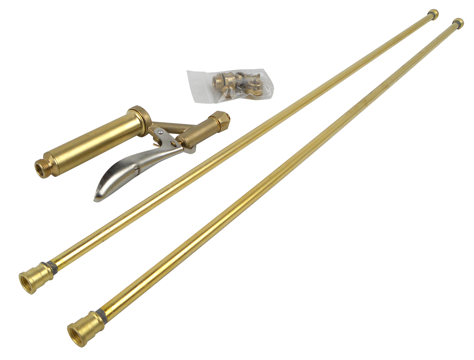 Besteht aus 2 Stück Verlängerungsrohr 750 mm, 1 Stück Bogen, 1 Stück Spezial-Kalkrundstrahldüse 1,5 mm, 1 Stück Flachstrahldüse 0,6 mm, 1 Stk. Momentabsperrhahn (Griffteil).
