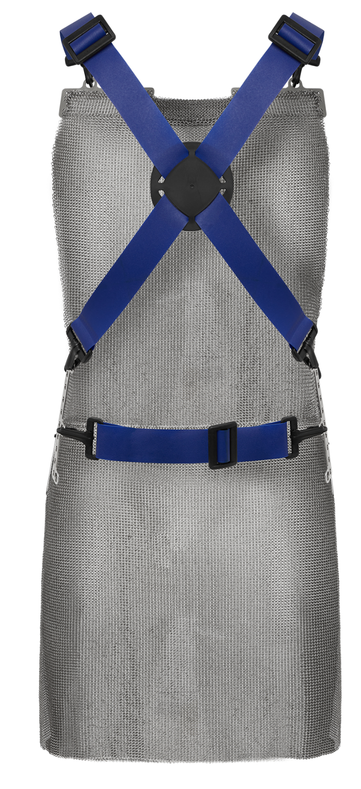 meshFlex® Stechschutzschürzen werden aus hochwertigem Edelstahl und nach neuesten Hygiene- und Sicherheitsanforderungen entwickelt und produziert. Das im Vergleich zu herkömmlichen Stechschutzschürzen kleinere Metallringgeflecht (Ring-Ø: 3,8 mm) und das hochwertige Tragesystem garantieren eine sehr gute Passform und Tragekomfort. Gleichzeitig erhöht die Detektierbarkeit einzelner Komponenten die Lebensmittelsicherheit innerhalb der Produktionsprozesse.