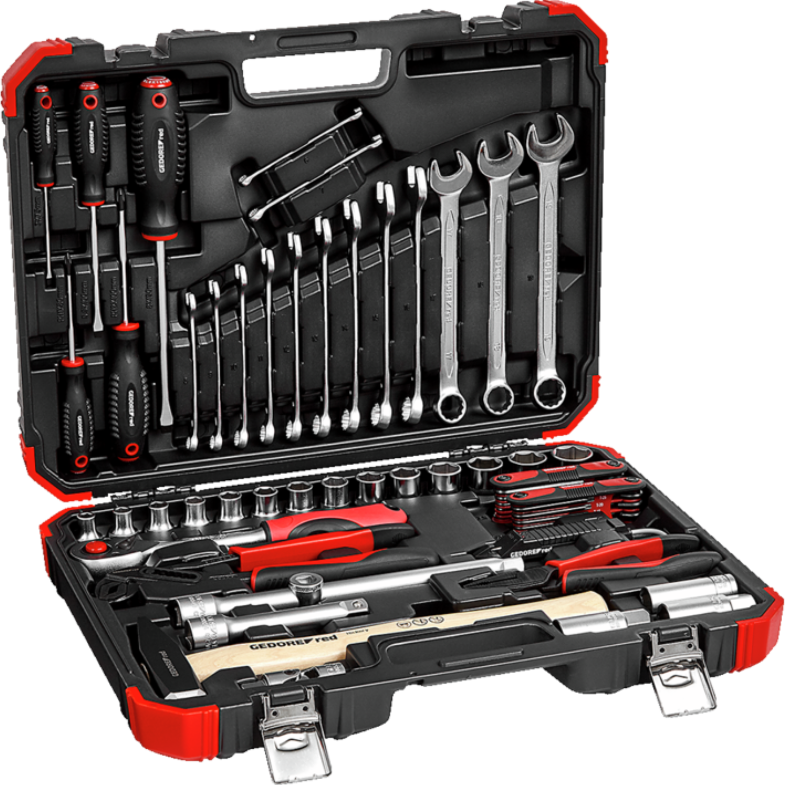 Universal Werkzeugkoffer, bestückt mit den wichtigsten Werkzeugen.Alles in bewährter Gedore-red Qualität. Die Werkzeuge sind Formstabil in eine massiven Kunststoffkoffer verwahrt, dadurch ist ein einfacher Transport gewährleistet.Der Koffer eignet sich perfekt für den mobilen Einsatz oder als Zusatzausstattung für Ihren PKW, Traktor oder sonstige Fahrzeuge.Maße: 452 x 86 x 340 mm BxHxTGewicht nur ca. 7 Kg.
