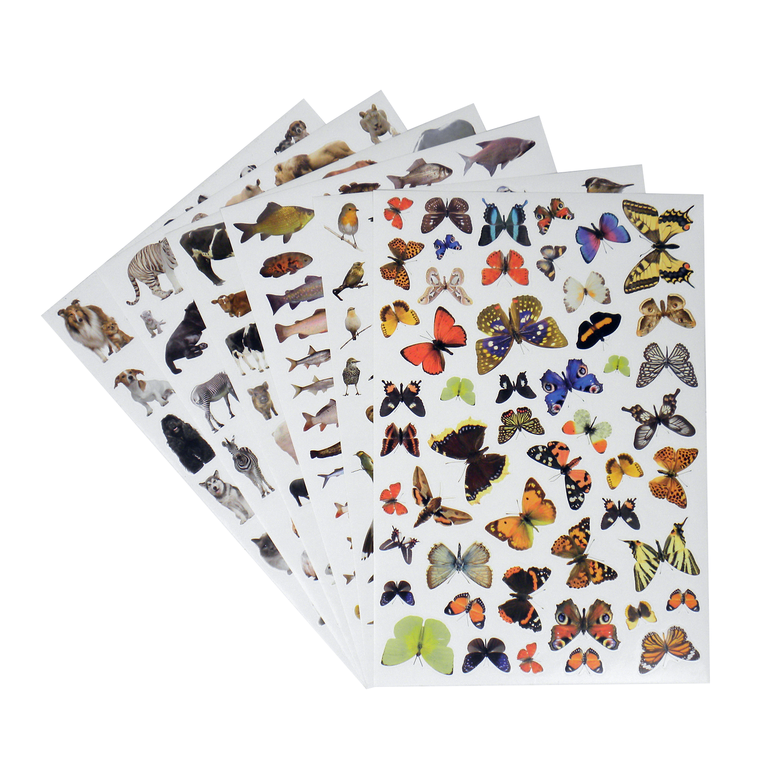 Je 1 Bogen mit Stickern von Tieren zum Thema Bauernhof, Wildtiere, Schmetterlinge, Vögel, Fische, Hunde und Katzen (22 x 32)