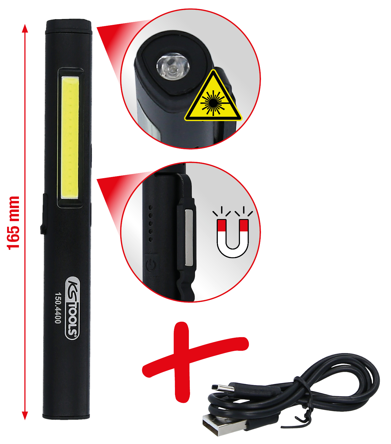 • 3 Leuchtmodi: Stripe COB, Spot LED und UV-Spotlicht
