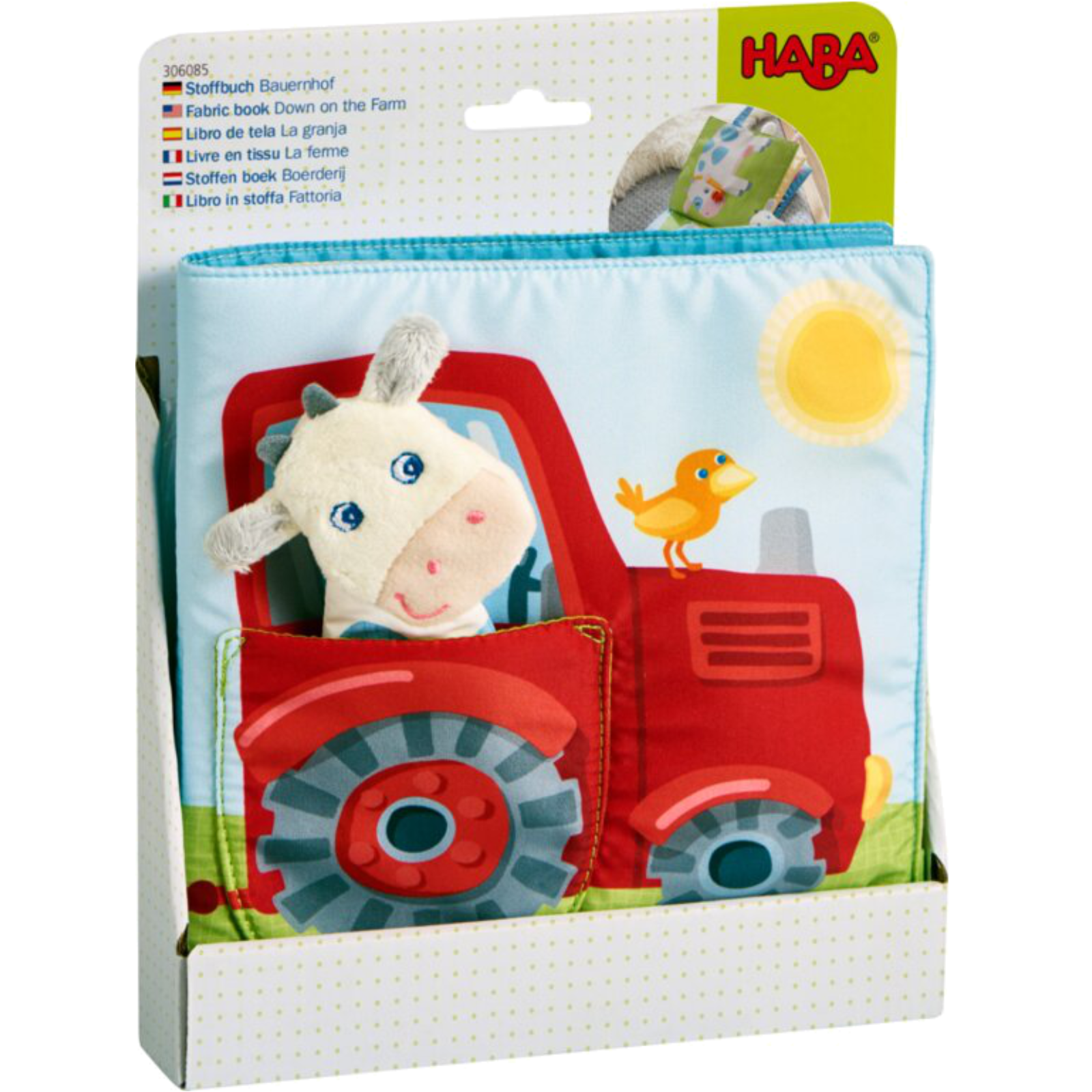 Am Bauernhof gibt es viel zu Entdecken! Und genau dorthin geht es mit dem weichen Stoffbuch, das bereits die Jüngsten zum Schauen, Fühlen, Spielen und (Be-)Greifen einlädt. Nicht fehlen darf die Kuh: Sie ist als Fingerpuppe auf dem Bauernhof unterwegs und erlebt viele lustige Abenteuer. Dabei trifft sie auch andere Hoftiere. Mit Klappen, Quietsche und Spiegelfolie gibt es für Babys eine Menge zu entdecken. Die vielen Fühl- und Spielelementen des farbenfrohen HABA Stoffbuchs machen die „Lektüre“ besonders spannend und sorgen immer für gute Unterhaltung.Das ideale Babyspielzeug mit 6 weichen Seiten aus Polyester, welche sich von kleinen Händen gut greifen und umblättern lassenDieses Buch bietet eine Menge Überraschungen: Klappen, Spiegelfolie, Fühlelemente, Quietschen und viele DetailsDie Kuh-Fingerpuppe begleitet Kleinkinder durch das Soft-Bilderbuch, regt zum Erzählen von Geschichten und zu ersten Rollenspielen anMit vielen Elementen zum Greifen, Schauen, Fühlen und Hören fördert das Softbuch Babys in ihrer motorischen und sensorischen Entwicklungfür Babys ab 6 Monaten