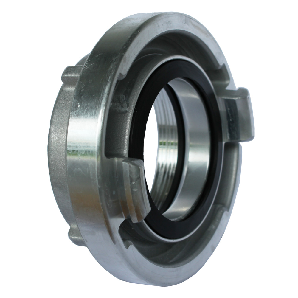 Storz Kupplung (Feuerwehranschluss) mit Innengewinde. Die Festkupplung ist aus Aluminium-Guss mit einer Nitril-Kautschuk Dichtung. Hergestellt in Deutschland.