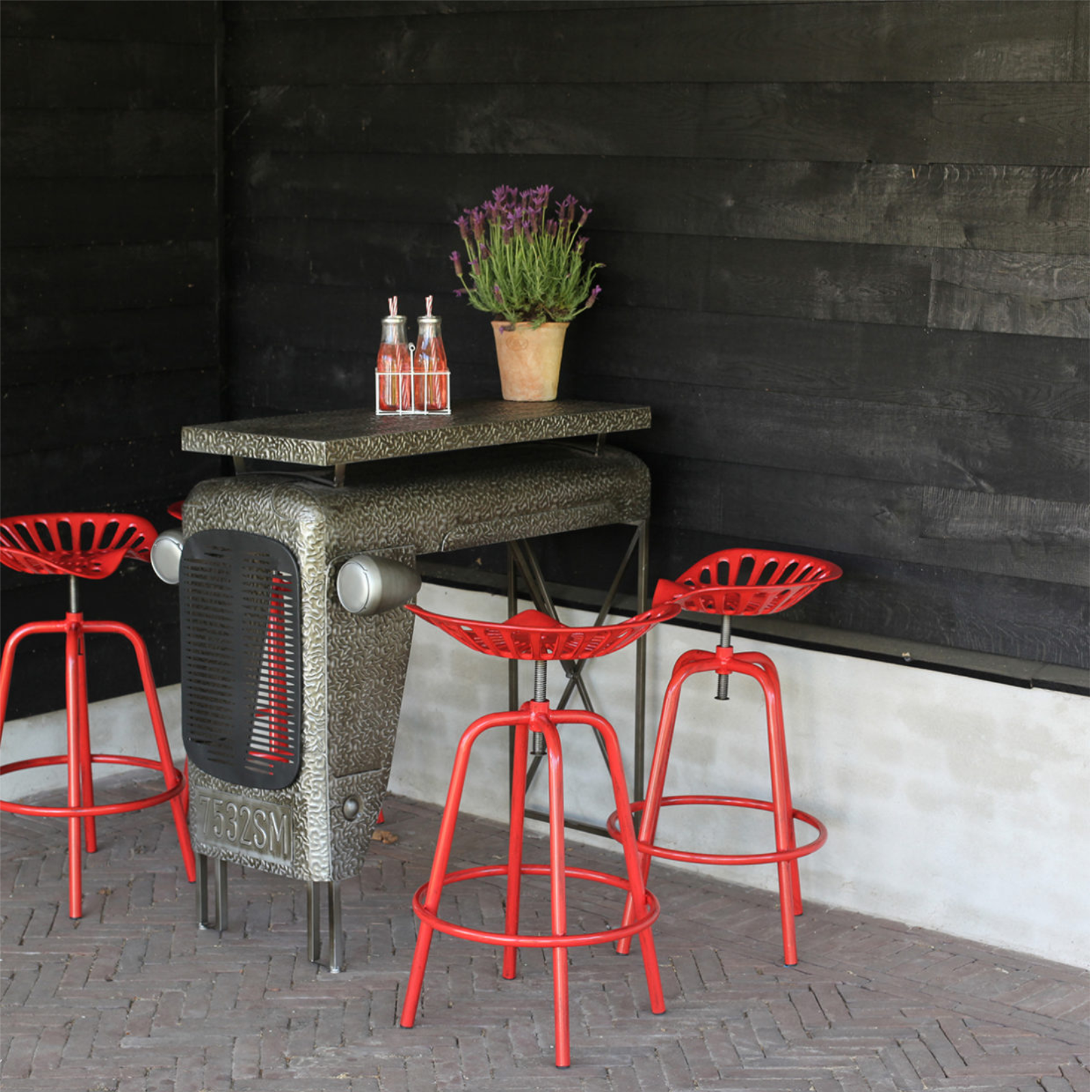 Ein Tisch mit Charakter – inspiriert von frühen Landmaschinen. Der markante Oldtimer-Look mit integriertem Grill und Scheinwerfern ist ein absoluter Stil-Garant.Technische Daten:Material: WeichstahlMaße: L 101,7 x T 65,2 x H 103,1 cmGewicht: ca. 15 kgTragfähigkeit: 50 kg