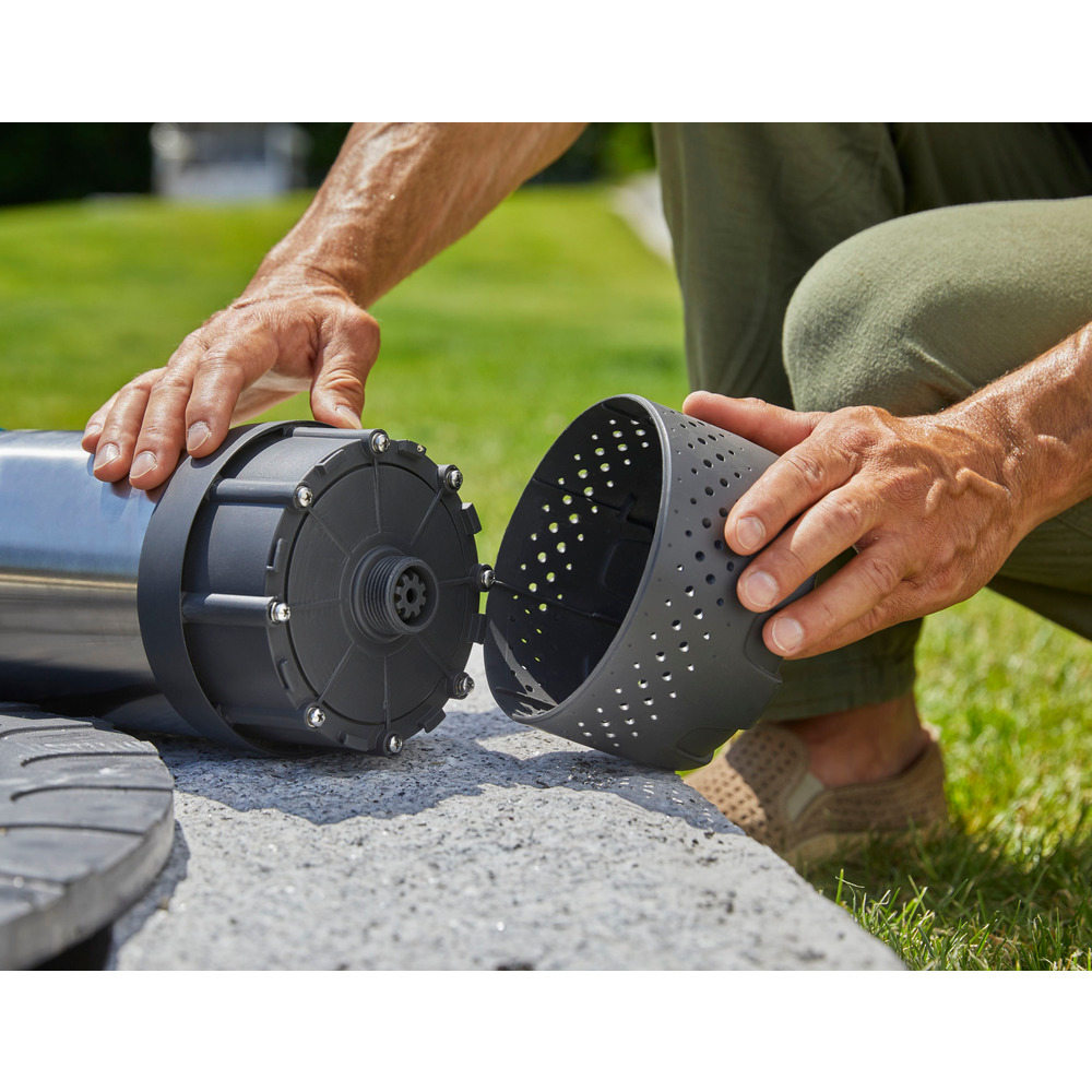 Leistungsstark und leiseDie perfekte Lösung, um Wasser aus der Tiefe zu fördern. Im Gegensatz zu üblichen Tauchpumpen kann diese Pumpe auch zum Reinigen, Betrieb von Sprinklern und Bewässerungssystemen oder der Wasserentnahme auf großen Tiefen verwendet werden.Technische Daten:Leistung - 900 WMax. Fördermenge: - 5900 L/hMax. Förderhöhe / Druck: - 35 m / 3,5 barMax. Eintauchtiefe: - 12 mPumpenlaufwerk: - 3-stufigMax. Medientemperatur: - 35°CGewicht: - ca. 9,4 kgMaße (LxBxH): - 15 x 15 x 48 cmAnschlusskabel: 15 m / H07 RN-FAnschlussgewinde: 33,3 mm (G1″)Befestigungsseil: 20 mTrockenlaufsicherung: Über SchwimmerschalterMit integriertem Rückschlagventil
