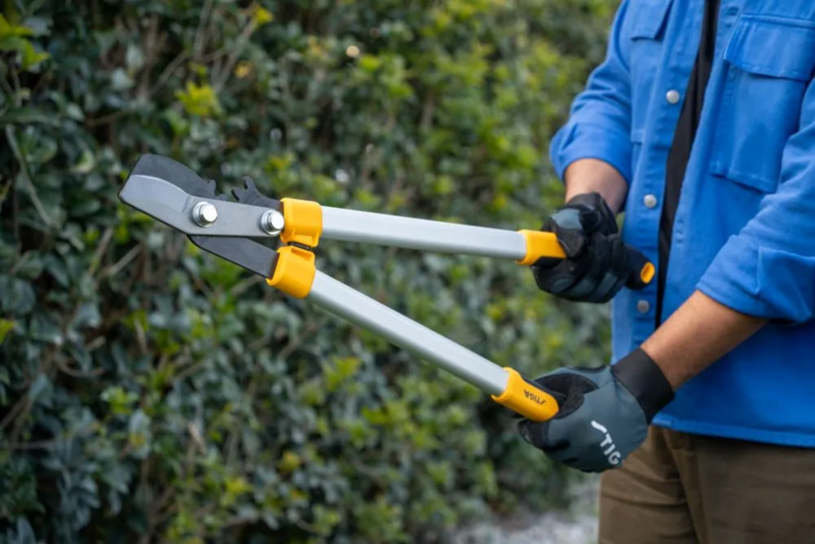 Die STIGA Bypass-Holzschere ist ideal für frisches Gehölz bis 42 mm Durchmesser.