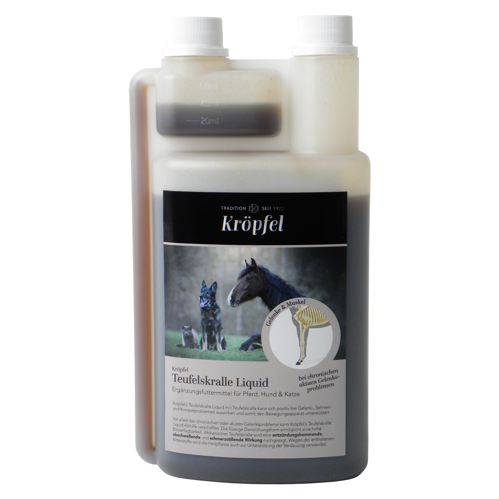 Verwendung: PferdeZusammensetzung:Traubenzucker, Propondiol 40% TeufelskrallenextraktAnalytische Zusammensetzung:Rohprotein 0,0%Rohfaser 0,0%Rohöle und fette 0,0%Rohasche 1,1%Natrium: 0,20%Feuchtigkeit 89,0%Hinweis für die ordnungsgemäße Verwendung:Großpferde (600kg LG)30 ml pro Tag60 ml pro Tag bei akuten ProblemenKleinpferde/Ponys15 ml pro Tag30 ml pro Tag bei akuten ProblemenHunde15-20 ml pro TagKatzen5-10 ml pro TagFütterungsdauer: Mind. 3 Wochen