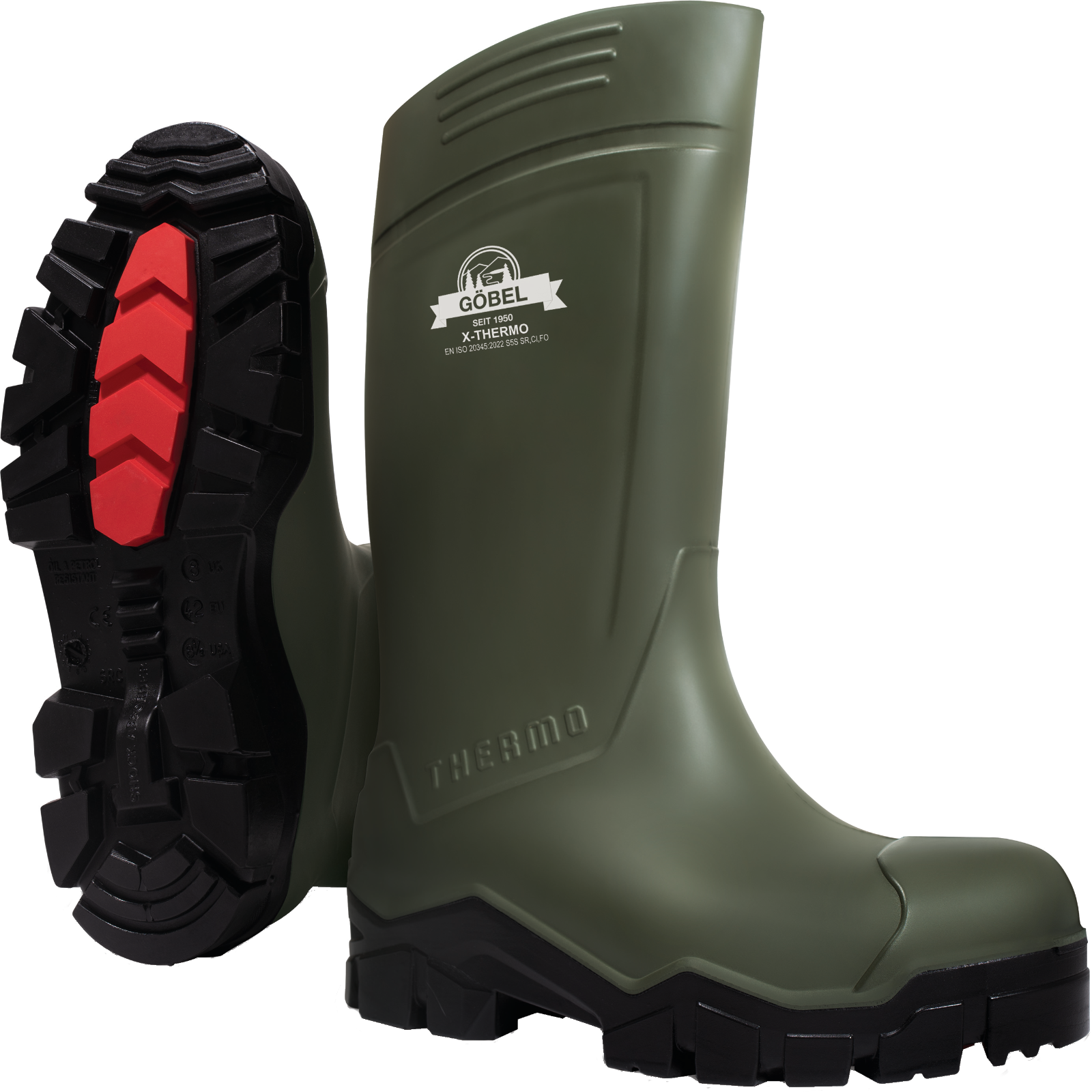 Thermostiefel PU S5 Therm – Der Winterstiefel für harte EinsätzeDer Sicherheits-Gummistiefel PU S5 Therm ist der ideale Begleiter für kalte Tage auf dem Hof, im Stall oder auf der Baustelle.Dank seiner hochwertigen PU-Materialien ist er nicht nur besonders langlebig, sondern auch angenehm leicht zu tragen – selbst bei langen Arbeitstagen. Das Innenfutter des Arbeitsstiefels aus wärmendem Vlies hält Ihre Füße auch bei Minustemperaturen warm. Die rutschfeste, extra dicke Profilsohle sorgt für sicheren Halt auf glatten Böden, wie man sie oft in Milchkammern, auf vereisten Wegen oder im Schlachthaus findet. Der Stiefel erfüllt die Sicherheitsklasse S5: mit Stahlkappe, durchtrittsicherer Zwischensohle und komplett wasserdichtem Schaft. Ideal für alle, die bei jedem Wetter draußen arbeiten – sei es beim Ausmisten, Füttern oder auf dem Acker.CE EN 20345 2022.