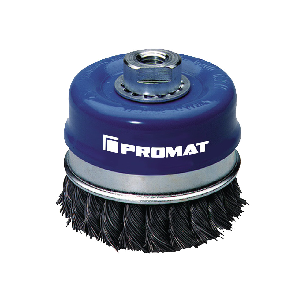 Aus gezopftem Draht, aggressives Werkzeug zum Einsatz bei schweren Reinigungsarbeiten. Mit Stützring & Winkelschleifer Aufnahme M14.