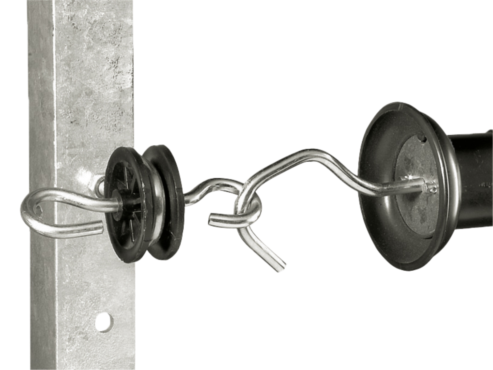 Schwarzer Torgriffisolator zum beidseitigen Einhängen von Torgriffen. Gewinde M6. Gewindelänge 25 mm. Pack = 10 Stück