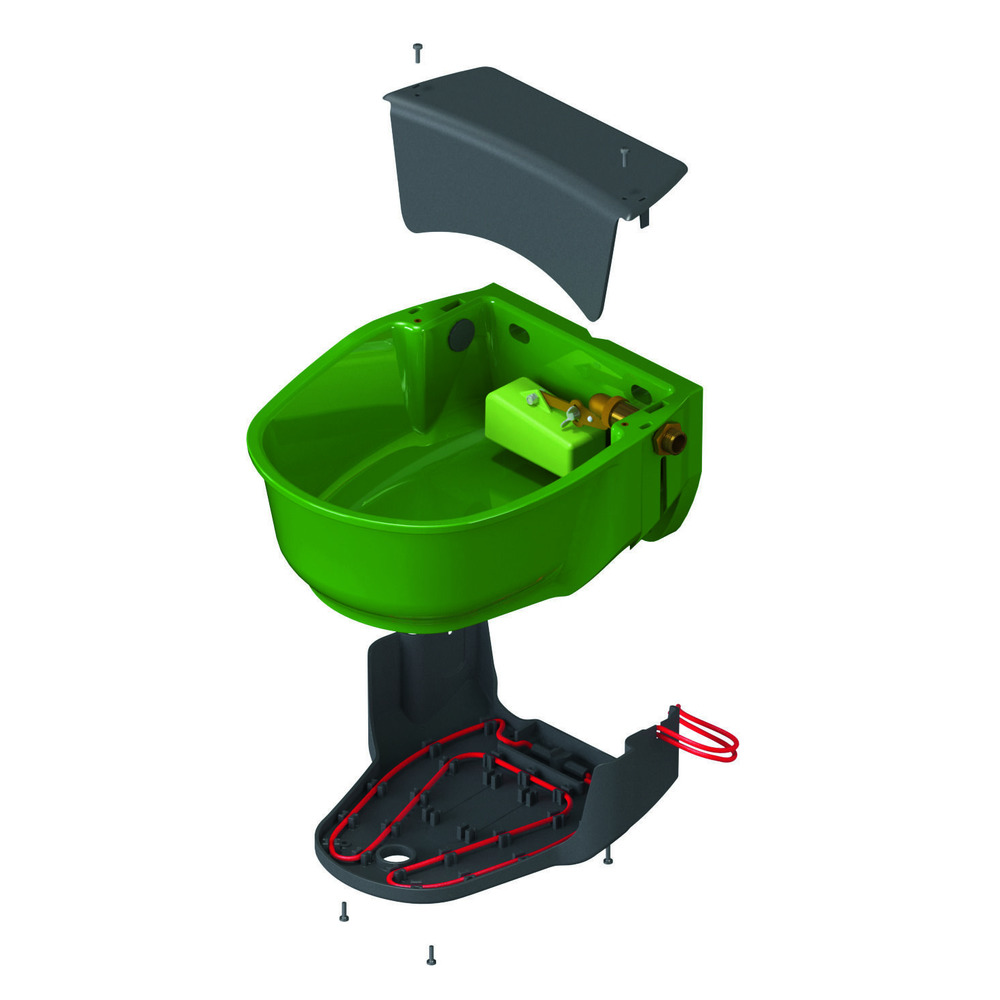 Tränkebecken aus hochwertigem Kunststoff mitintegriertem Heizkabel (ca. 73 W, 230 V) zur Beheizung von Tränkebecken, Ventil und bis zu 2 m Rohrleitung (Rohrbegleitheizung). Integriertes Frostschutzthermostat (Einschalttemperatur ca. +5 °C, Ausschalttemperatur ca. +13 °C), Heizkabel einfach austauschbar, für Umlaufheizsysteme geeignet. Ventilabdeckung mit Schnapphaken für schnellen Zugang, Volumen: 5 l, Wasserdurchfluss: ca. 6,5 l/min (2-3 bar),Wasseranschluss 1/2 Zoll von links und rechts möglich, inkl. Ablaufstopfen zur leichten Reinigung, geeignet für Wand- und Rohrbefestigung, Gewicht: 2,7 kg, frostsicher bis ca. -15 °C.