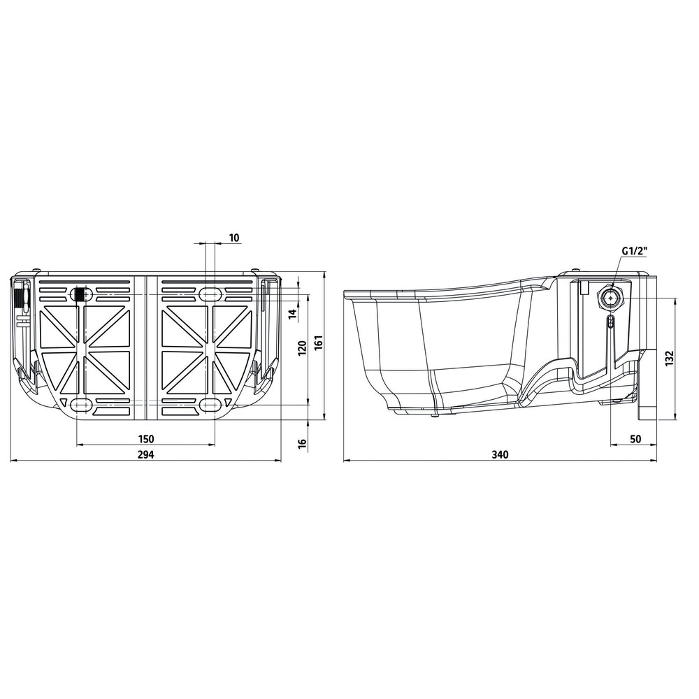 Aus massivem, feuerverzinktem Stahlrohr, zum Anschrauben an die Wand. Innenabmessungen: (T x B) 33 x 28,5 cm, Höhe inkl. Montageplatte: 20 cm.