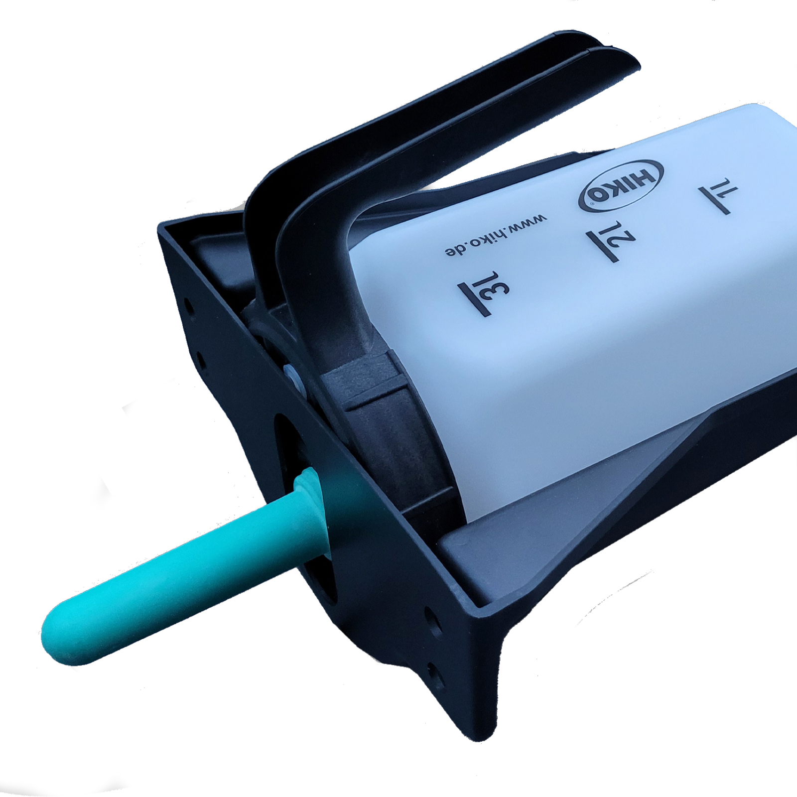 Zur Fixierung der Tränkeflasche an der Eimerhalterung (z. B. an der Kälberbucht oder am Iglu).Aus schwarzem Kunststoff.Passend zur 1-Click-Tränkeflasche 3 Liter.