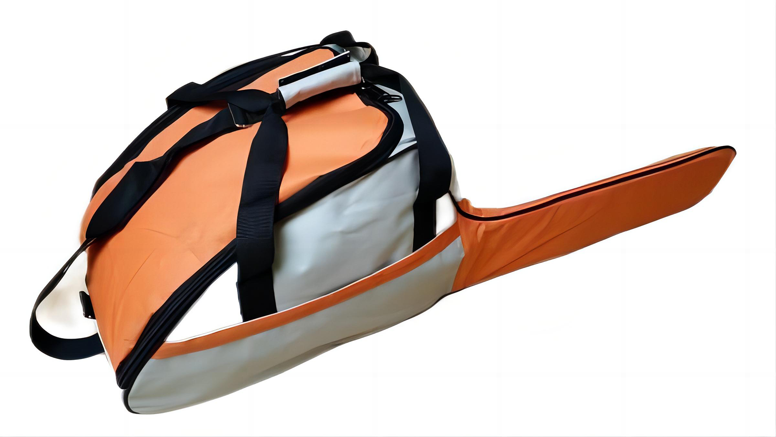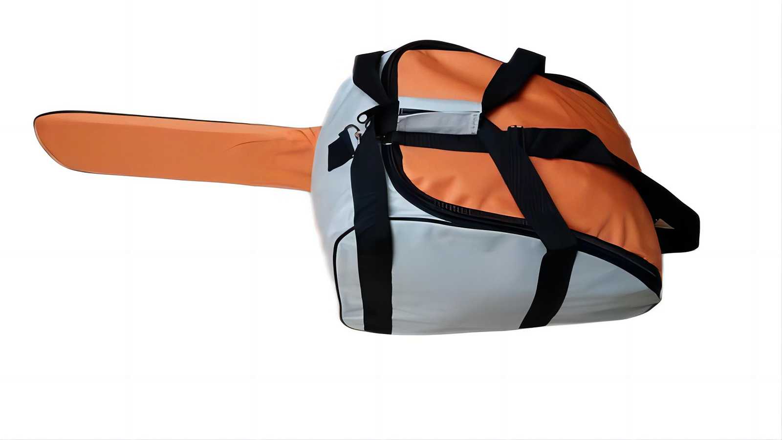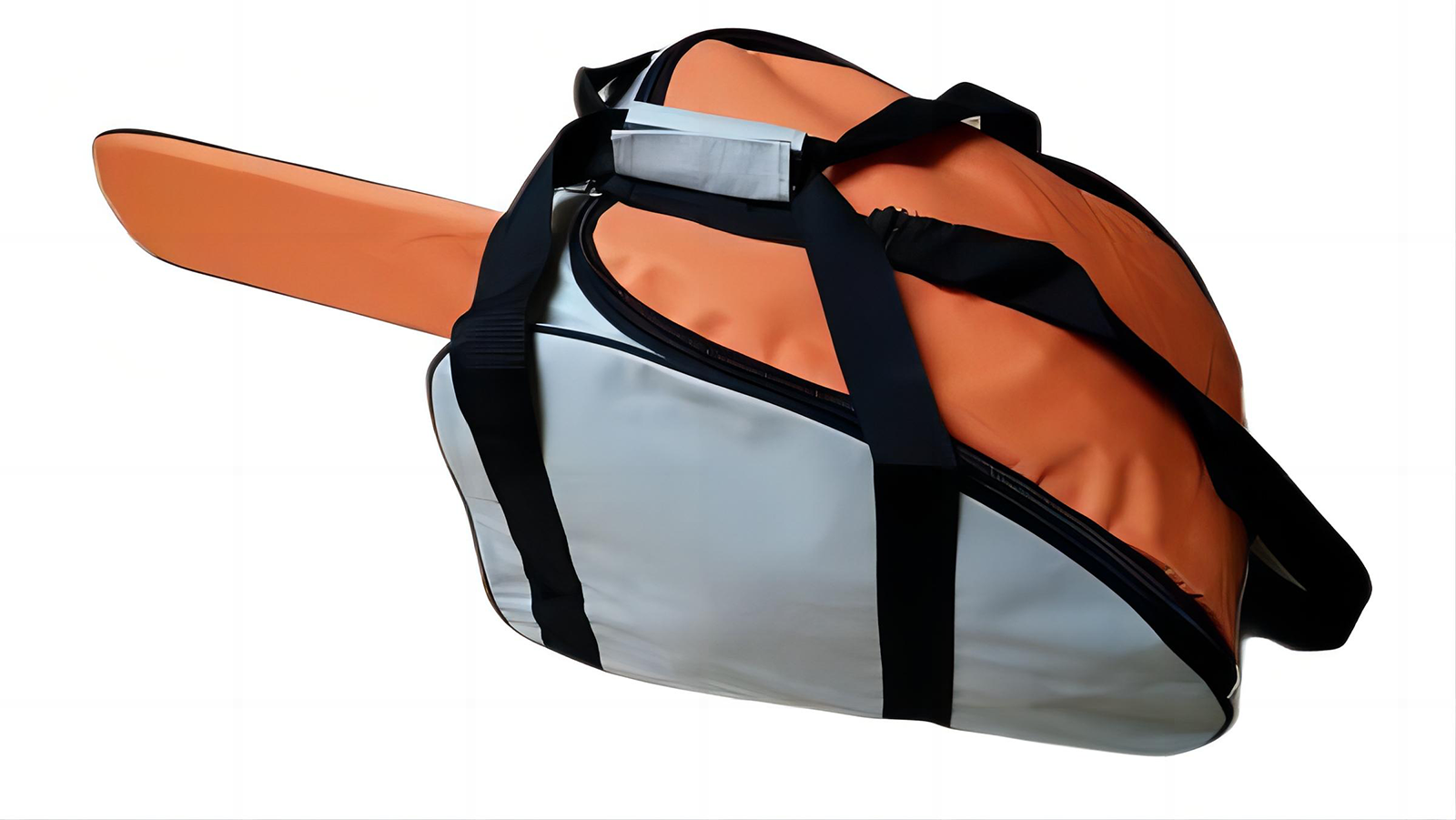 Mit Reisverschluss und Tragegriffen, ohne Kettensäge.