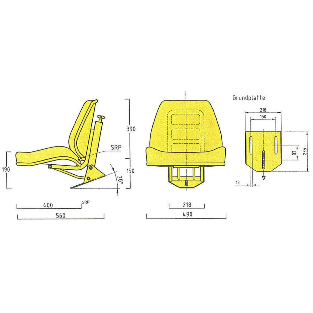 Vollgefederter Spezialsitz für Steyr-Plus Traktoren ab BJ 69, Steyr 8055, 20° schräge Grundplatte, Gewichtseinstellung 50 - 120 kg, Monroe-Meysan Stoßdämpfer. BxHxT: 480 x 450 x 590 mm.