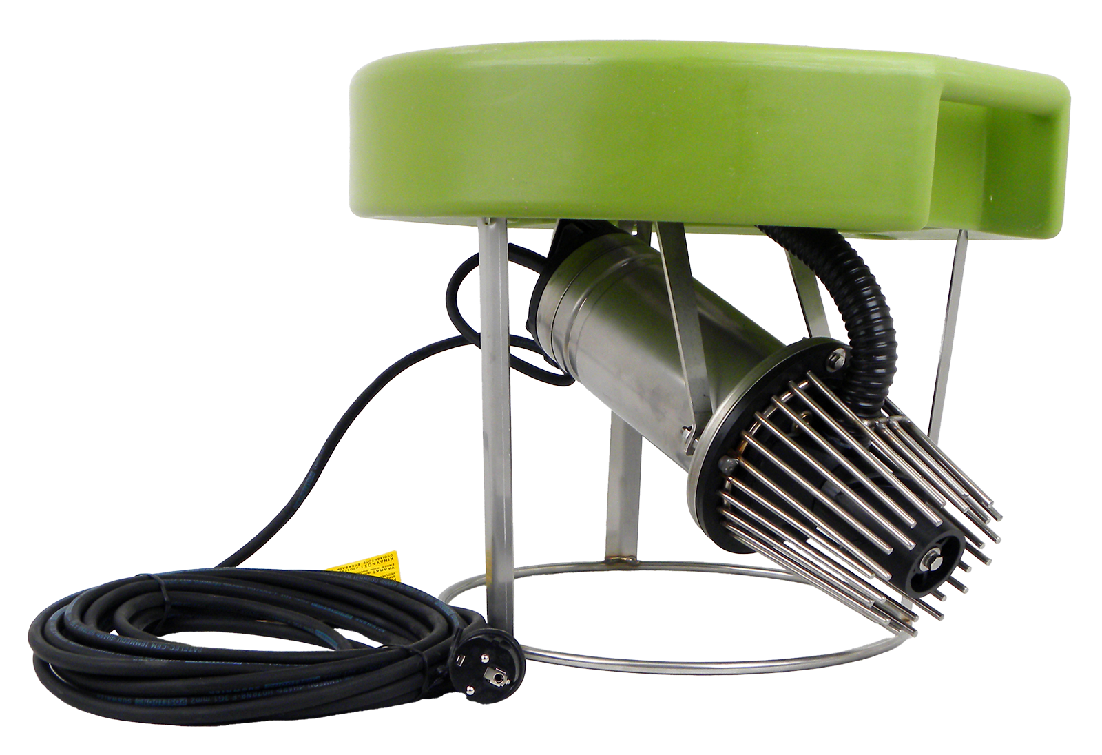 Turbo-Jet – Leise Power für sauerstoffreiches WasserDer Turbo-Jet bringt Bewegung ins Wasser – kraftvoll, energieeffizient und nahezu geräuschlos.Mit feinen Luftblasen und starker Strömung sorgt er für klares, gut durchlüftetes Wasser – ideal für Teiche bis 500 m²Ihre Vorteile auf einen Blick:Der leistungsstarke Tauchmotor mit direkt angetriebenem Schaufelrad bewegt große Wassermengen – bei geringem Stromverbrauch!Mehr Sauerstoff für ein gesundes Ökosystem:Durch die schnelle Strömung entsteht ein Sog, der Luft ansaugt und als feine Bläschen im Wasser verteilt. So bleibt der Sauerstoff besonders lange im Wasser gebunden – perfekt für Fische und Mikroorganismen.Gleichmäßige Wasserzirkulation:Der schräg gerichtete Wasserstrahl verteilt die Bewegung im gesamten Gewässer und verhindert tote, abgestandene Wasserzonen, in denen sich Schadstoffe ansammeln könnten.Flüsterleiser Betrieb:Kein Plätschern – nur ein sanftes Ansauggeräusch ist hörbar. Ideal für bewohnte Umgebungen.Sicher für Tiere und Pflanzen:Ein Schutzgitter hält Fische und Schwimmteile fern vom Schaufelrad. Dank der durchdachten Form wird es durch die starke Strömung fast von selbst frei gehalten.Winterfest und zuverlässig:Auch bei Minustemperaturen bleibt der Turbo-Jet einsatzbereit. Die Wasserbewegung verhindert Eisbildung weitgehend.Robust und langlebig:Die doppelte Dichtung im Ölbad schützt den Motor dauerhaft vor Wasser und sorgt für einen sicheren, langjährigen Betrieb.Technische Daten:Kabellänge: 10 MeterMotorleistung: 0,35 kW