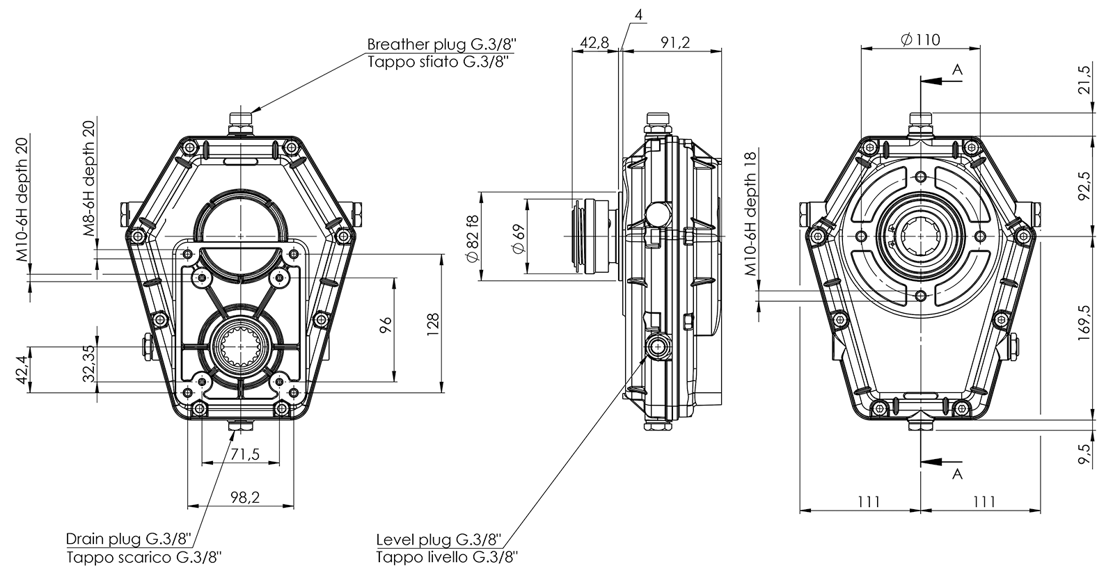 Übersetzungsgetriebe mit Aufsteckverschluss stellen eine effiziente, flexible und wartungsfreundliche Lösung für den Antrieb von Hydraulikpumpen dar. Sie ermöglichen die optimale Anpassung der Drehzahlen, was zu einer verbesserten Leistung und Zuverlässigkeit hydraulischer Systeme in einer Vielzahl von Anwendungen führt. Bei der Auswahl eines geeigneten Getriebes sollten die spezifischen Anforderungen der Anwendung hinsichtlich Drehmoment, Drehzahl und Baugröße berücksichtigt werden.Der Anschluss für die Zapfwelle ist 1 3/8 x 6 Zähne. Die Eingangsdrehzahl kann bis 1000 U/min betragen.
