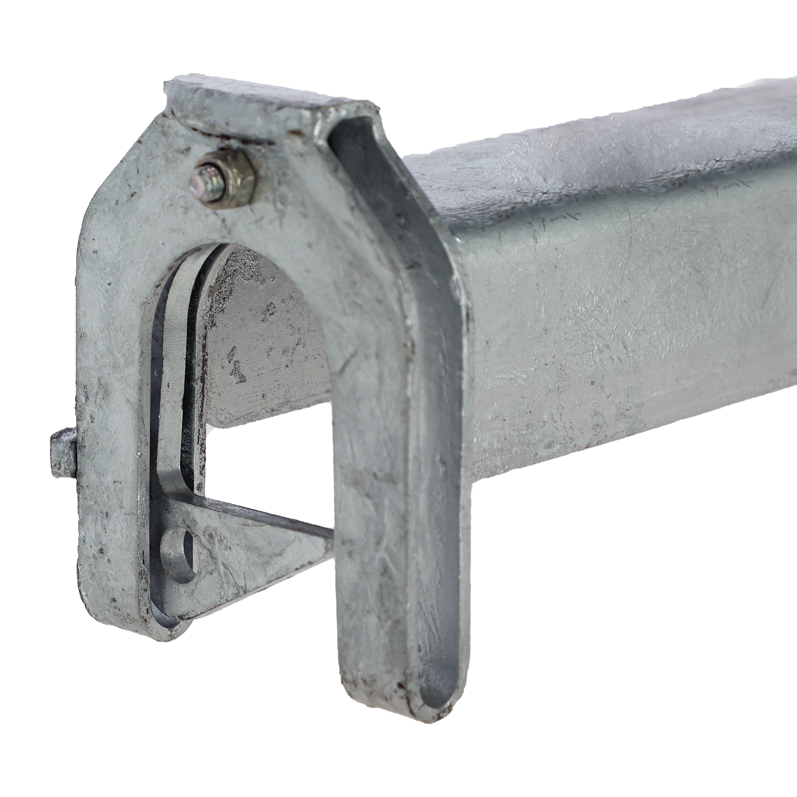 Stahl feuerverzinkt. Ermöglicht das sichere Verbinden von 2 Torflügeln. Schließfunktion mit Einrastmechanismus.