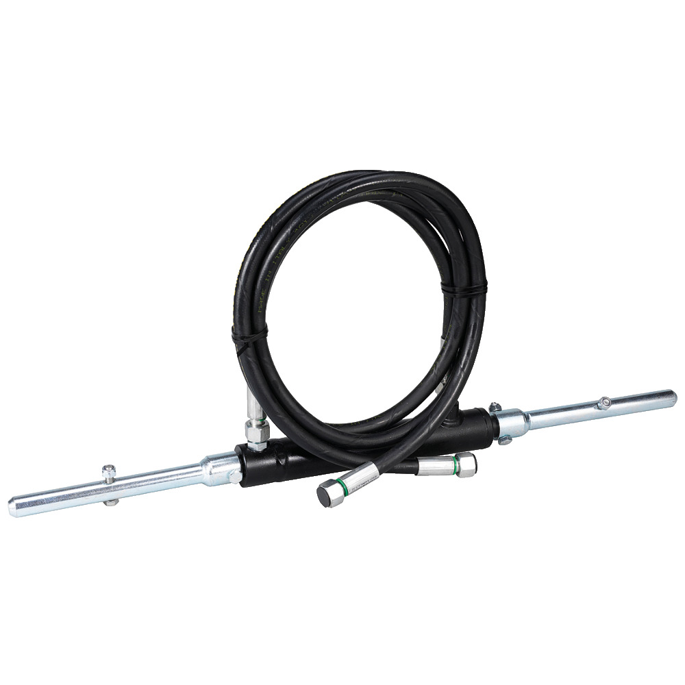 Zum Umrüsten der mechanischen Verriegelung auf eine hydraulische Verriegelung der Arbeitsgeräte mit einem doppeltwirkenden Zylinder. Inklusive 1,5 m Schlauch, Anschluss M18x1,5/12L Überwurfmutter.In Verbindung mit der Führung Nr. 103099 (siehe Zubehör) können Sie diesen Umrüstsatz auf jeden beliebigen Schnellwechselrahmen anbringen. Die Einbaulänge L(min) beträgt 714 mm. Mit dem Hub von 150mm beträgt die max. Länge L(max) 864 mm. Der Verriegelungsbolzen hat einen Durchmesser von 20mm.Wir weisen Sie darauf hin, dass der hydraulische Steuerkreis für den Verriegelungszylinder in der Durchflussmenge auf 10-15 L/min. und der max. Druck auf 160bar beschränkt werden soll.