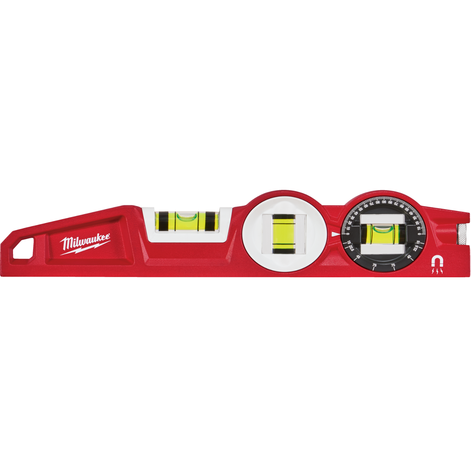 Spezial Wasserwaage für Waagereche/senkrecht und Gehrungsmessung.Mit 360° drehbarer Winkel-Libelle für das einfache Messen oder Übertragen von Winkel.Der starke Magnet und die V-Nut sorgen für einen sicheren Halt auch auf Rundmaterialien.Extrem robust durch Druckgussaluminium-Profil. Länge 25 cmVerstellbare 360°-Winkel-Libelle zum Messen und Übertragen von Winkeln.Libelle arretierbar für hohe Präzision, auch wenn die Wasserwaage zwischendurch in der Tasche verstaut wird.