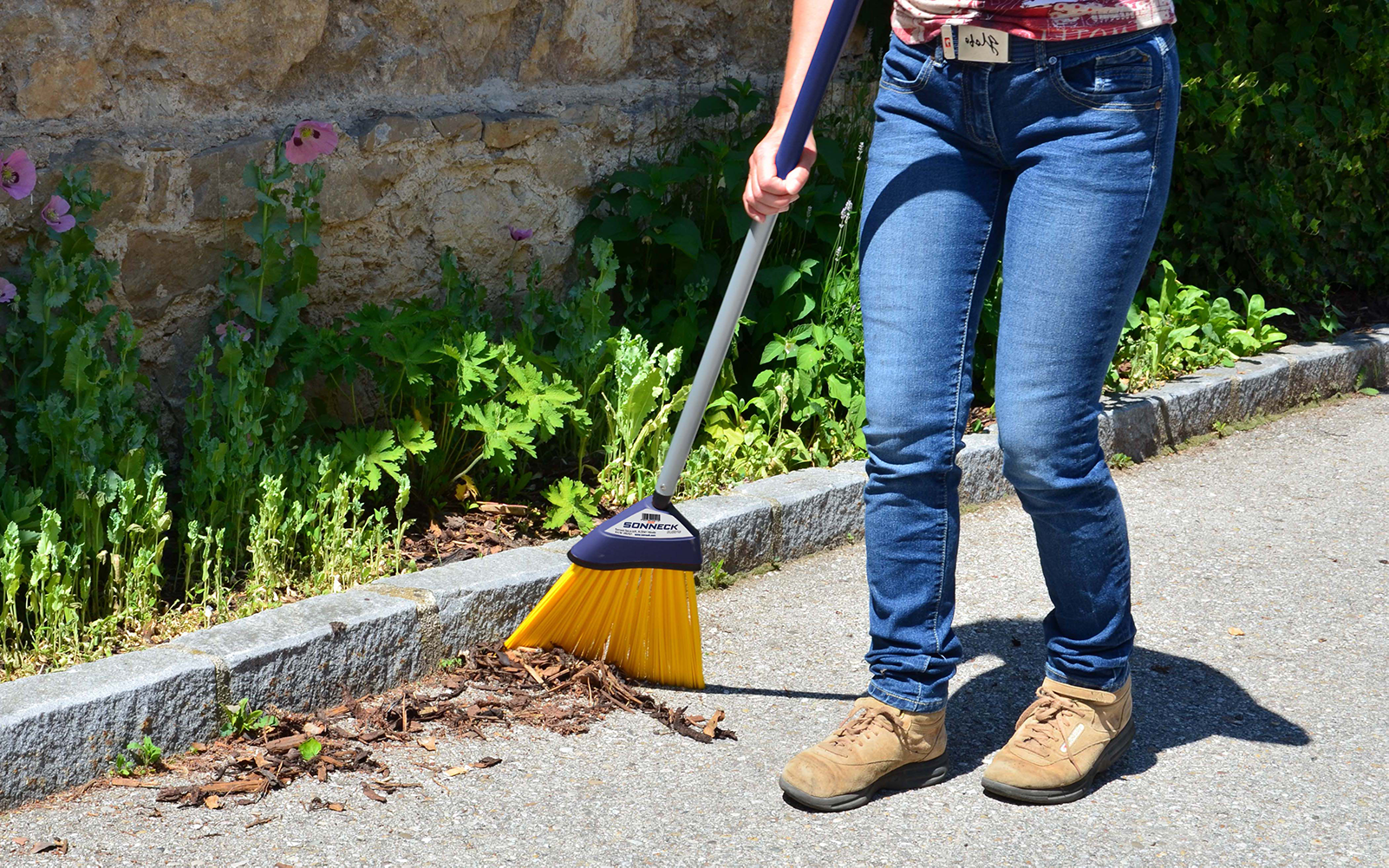 Profi-Straßenbesen mit extrastarkem ummantelten Stahlrohrstiel mit 1300 mm. Angeschrägte Sternborsten für optimale Kehrleistung und lange Lebensdauer. Größe 380 x 260 mm.