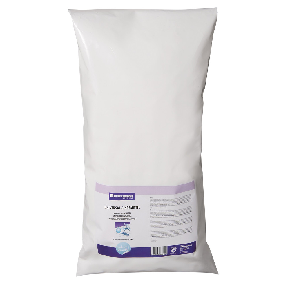 Universal-Bindemittel, auf Basis von Calciumsilikathydrat · stark saugend, geruchsbindend, Naturprodukt, unbegrenzt lagerfähig · Farbe: weißAnwendung:für eine schnelle und einfache Beseitigung von ausgelaufenen Flüssigkeiten wie z.B. Öle, Fette, Schmierstoffe, Farben und Lacke, Lösemittel usw. · auch aggressive, organische und anorganische, sowie wasserlösliche Chemikalien können aufgenommen werden · nicht für starke Säuren und Oxidationsmittel geeignet · nicht wasserabweisend, nicht schwimmfähig · einsetzbar in fast allen Arbeitsbereichen wo Flüssigkeiten verarbeitet, gelagert oder transportiert werden · für den Innen- und Außenbereich geeignet ·Hinweis:Bindemittel nach Gebrauch nicht in den Restmüll geben, sondern unter Beachtung der behördlichen Vorschriften für die aufgenommenen Medien fachgerecht entsorgen. ·Weitere technische EigenschaftenTyp: lllR · Saugleistung max.: 16 (pro Sack)l · Material: Calciumsilicat · Gebinde: Sack