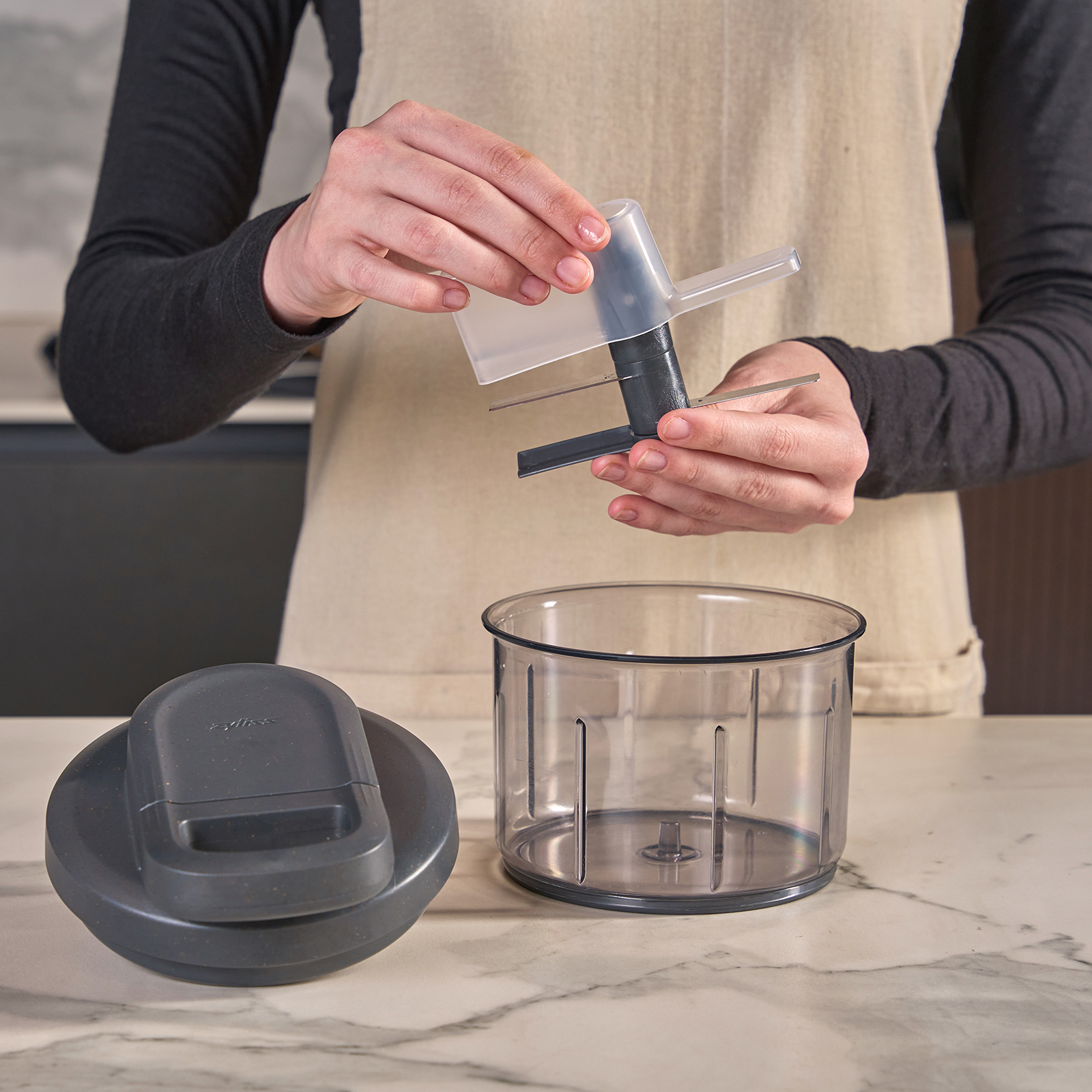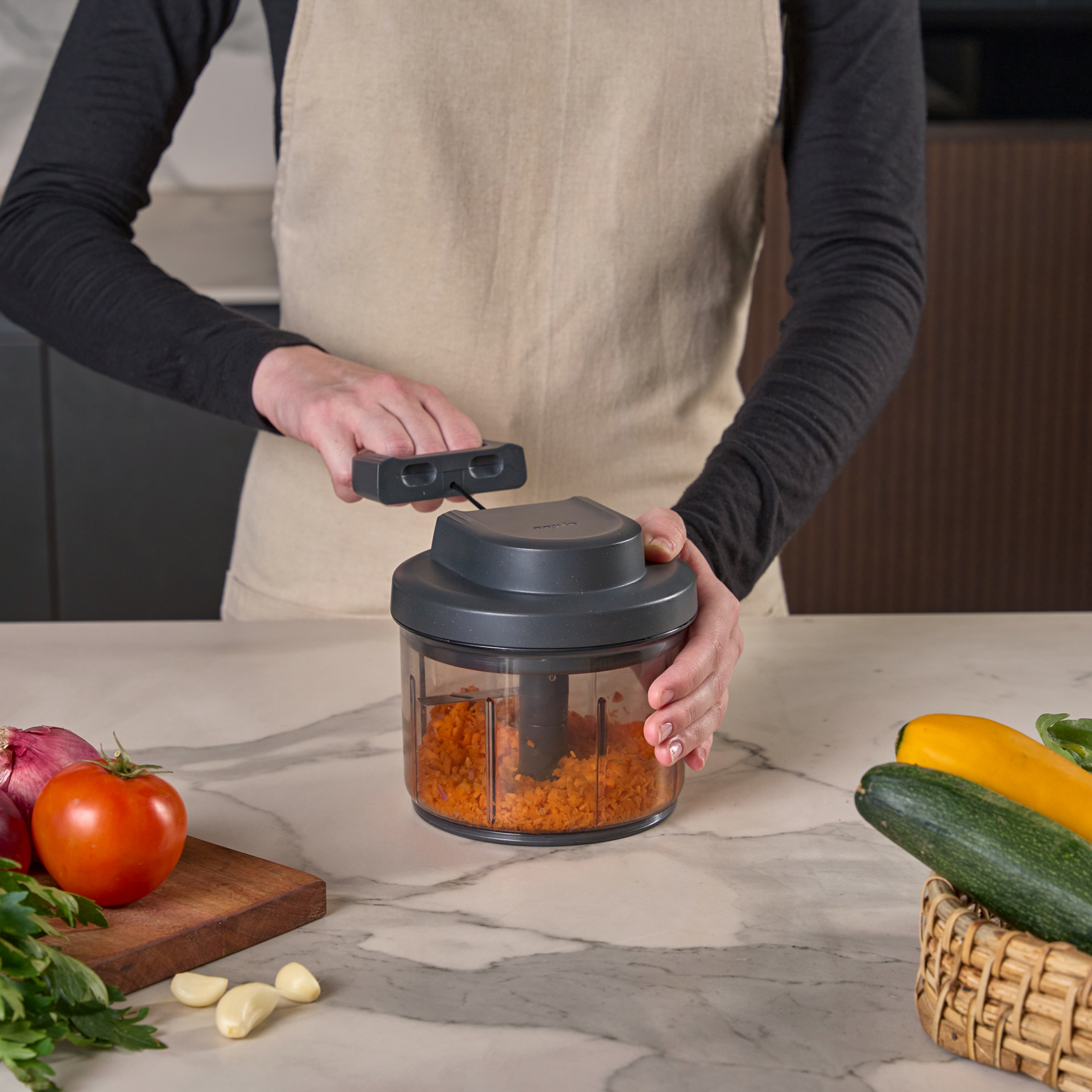 Der Zyliss Universalhacker: Schneller, einfacher, vielseitiger hacken!Müdes Schnippeln, Tränen beim Zwiebelschneiden oder ungleichmäßige Ergebnisse gehören der Vergangenheit an! Der Zyliss Universalhacker ist Ihr neuer Lieblingshelfer in der Küche, der das Zerkleinern von Zutaten revolutioniert.Dieser kompakte und leistungsstarke Küchenhelfer macht kurzen Prozess mit Zwiebeln, Knoblauch, Kräutern, Nüssen und vielem mehr. Mit nur wenigen Handgriffen oder Pressbewegungen erzielen Sie im Handumdrehen perfekt gehackte Ergebnisse – genau so, wie Sie es brauchen!Das clevere Design des Zyliss Universalhackers sorgt nicht nur für schnelle und gleichmäßige Ergebnisse, sondern auch für eine sichere und saubere Handhabung.Die Klingen sind geschützt, und die Reinigung ist ein Kinderspiel.Ihre Vorteile auf einen Blick: