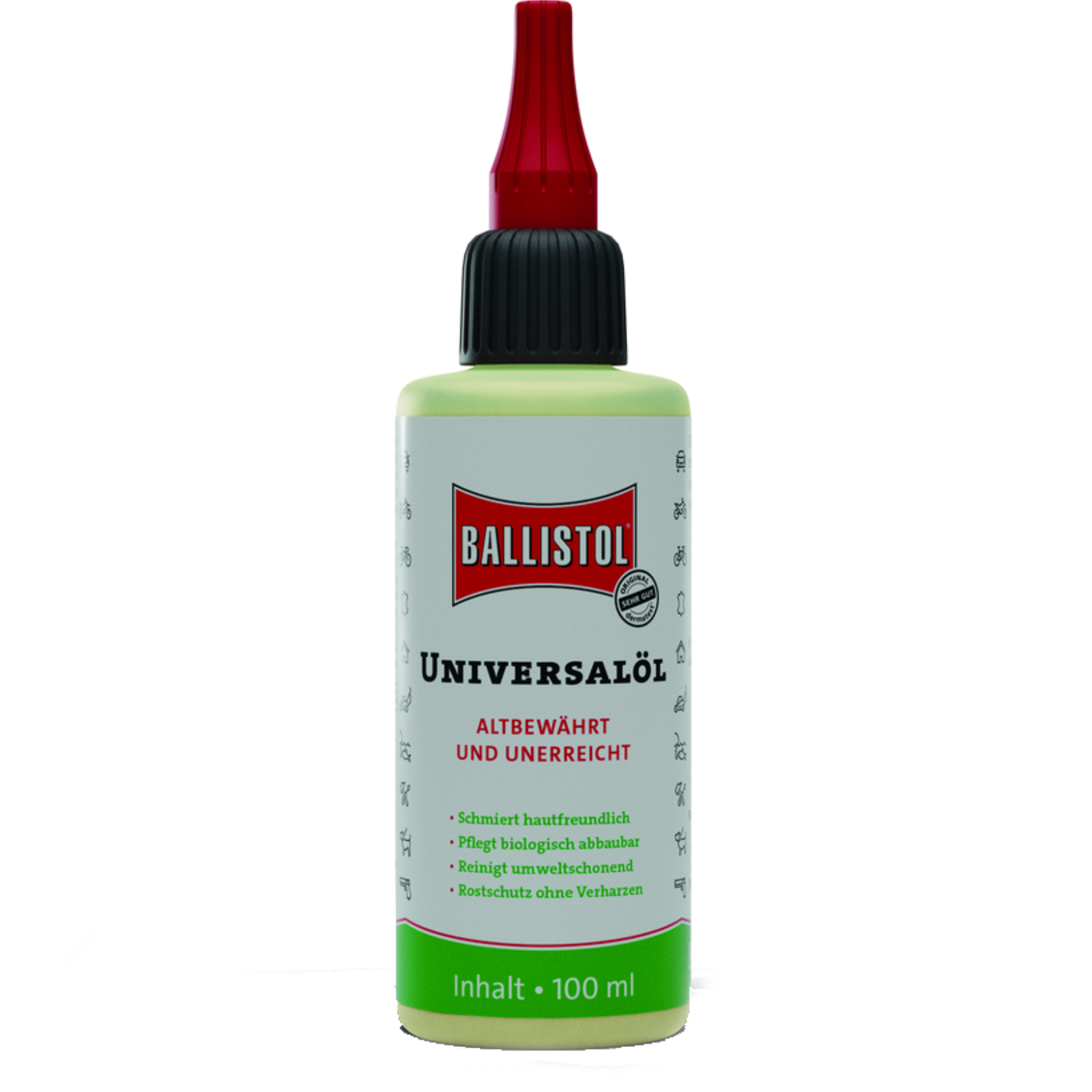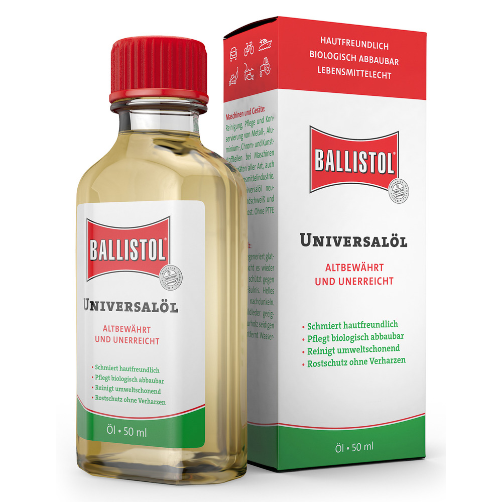 BALLISTOL ist medizinisch rein und voll biologisch abbaubar. Schmiert die Mechanik und schützt vor Rost, pflegt Holz und Leder, schützt vor Fäulnis und Schimmel. Ideal auch zur Reinigung von Edelstahl- und Aluminium.