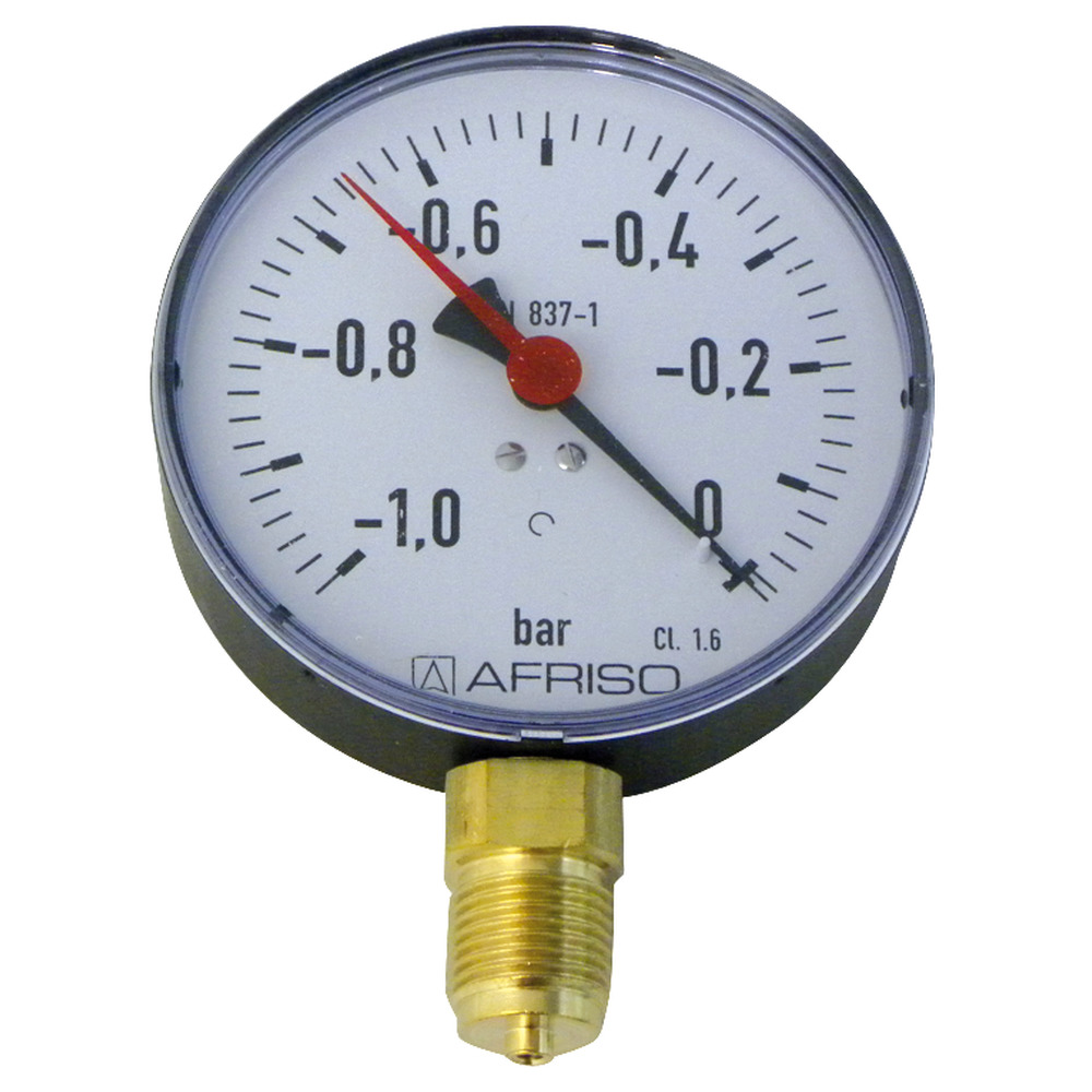 Von 0 bis -1,0 bar. Ø 100 mm, 1/2 Zoll Anschluss.