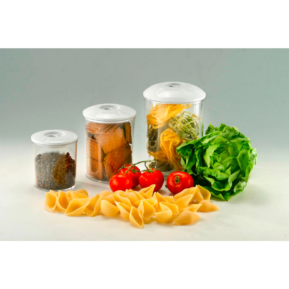 Die runden und durchsichtigen Vakuumbehälter eignen sich optimal, um darin trockene bzw. empfindliche Lebensmittel frisch zu halten. Mithilfe des bei der Vakuumverpackungsmaschine VAC585 mitgelieferten Zubehörschlauches kann den Behältern des Sets ganz einfach der Sauerstoff entzogen werden. Diese können dann auch problemlos im Kühlschrank oder der Kühltruhe bei bis zu -18° gelagert werden. Das Set besteht aus 3 runden Behältern 0,75 Liter, 1,5 Liter und 3 Liter inkl. Deckel.(Lieferung ohne Absaug-Schlauch / Dieser ist beim Vakuumierer 131489 im Lieferumfang enthalten oder kann separat bestellt werden.)