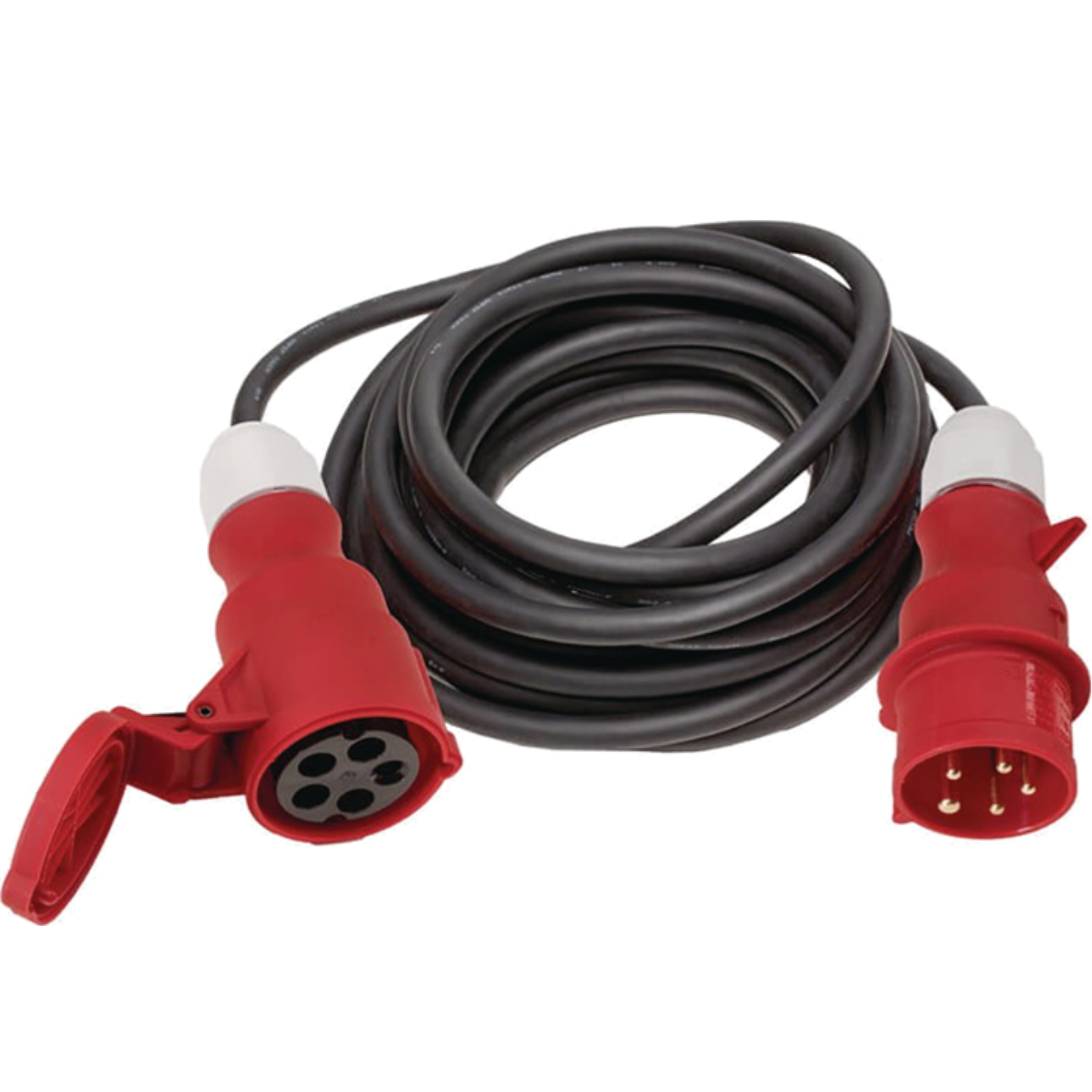 Hochwertiges Verlängerungskabel mit 5 x 4 mm CEE H07RN-F Kabel mit Baustellenzulassung für Innen und Außenbereichgeprüft nach VDE 0285-525-2-21, IEC 60309.Stecker und Kupplung jeweils 5 x 32 Amp.