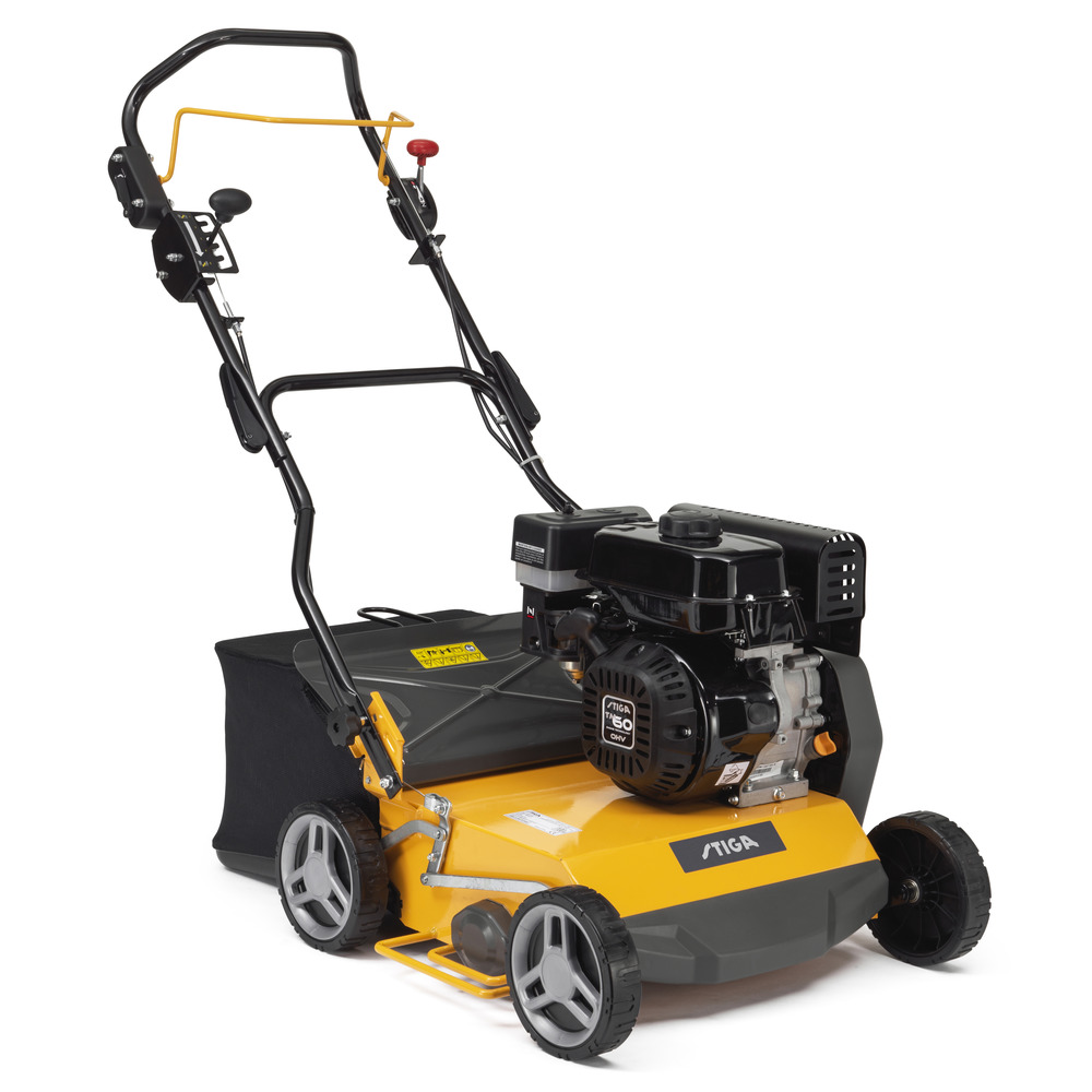 • 40 cm Arbeitsbreite für schnelles und effizientes Vertikutieren und Belüften des Bodens. Angetrieben durch einen 182 cm³ starken Viertakt-Motor