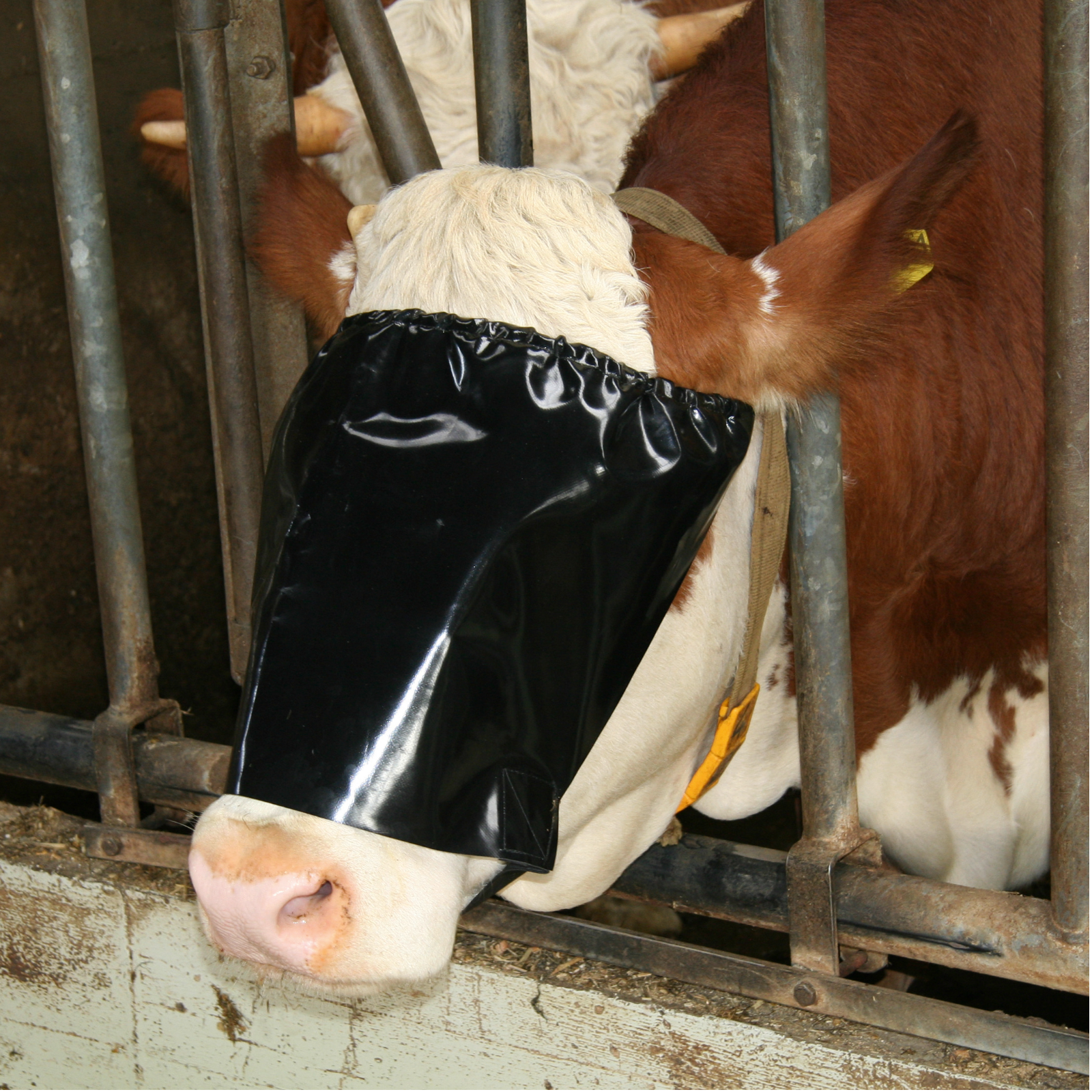 Beidseitig beschichteter, abwaschbarer Planenstoff aus Polyester mit PVC-Beschichtung. Mit elastischem Expandergummiband 80 cm zur Anpassung an den Kopf des Tieres.