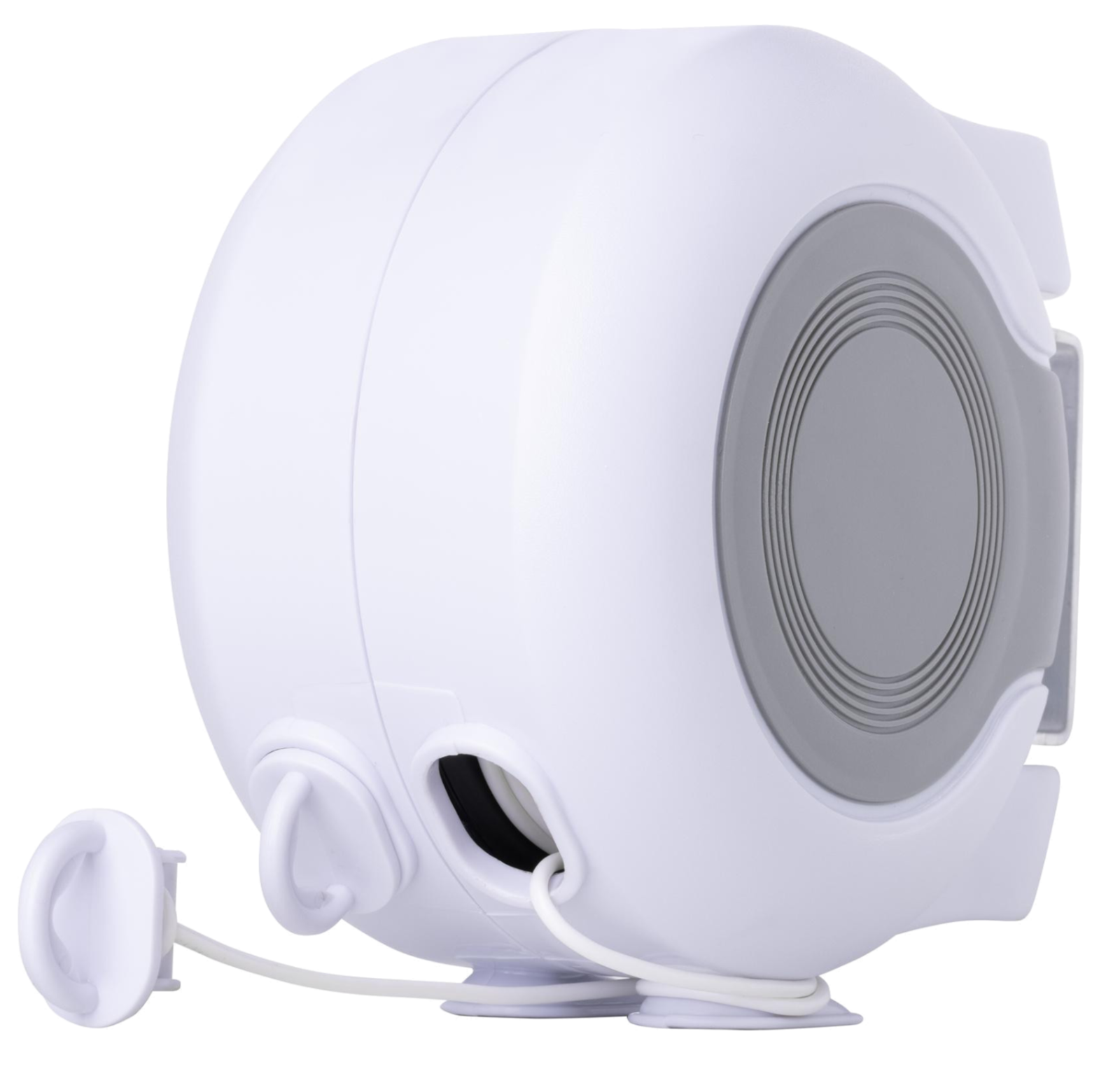 Einfache Wandmontage: Das kompakte Gehäuse (16 x 9,5 x 18 cm) wird fest an der Wand montiert. Bei Bedarf ziehst du die Leinen einfach aus und lässt sie nach dem Trocknen wieder platzsparend verschwinden.